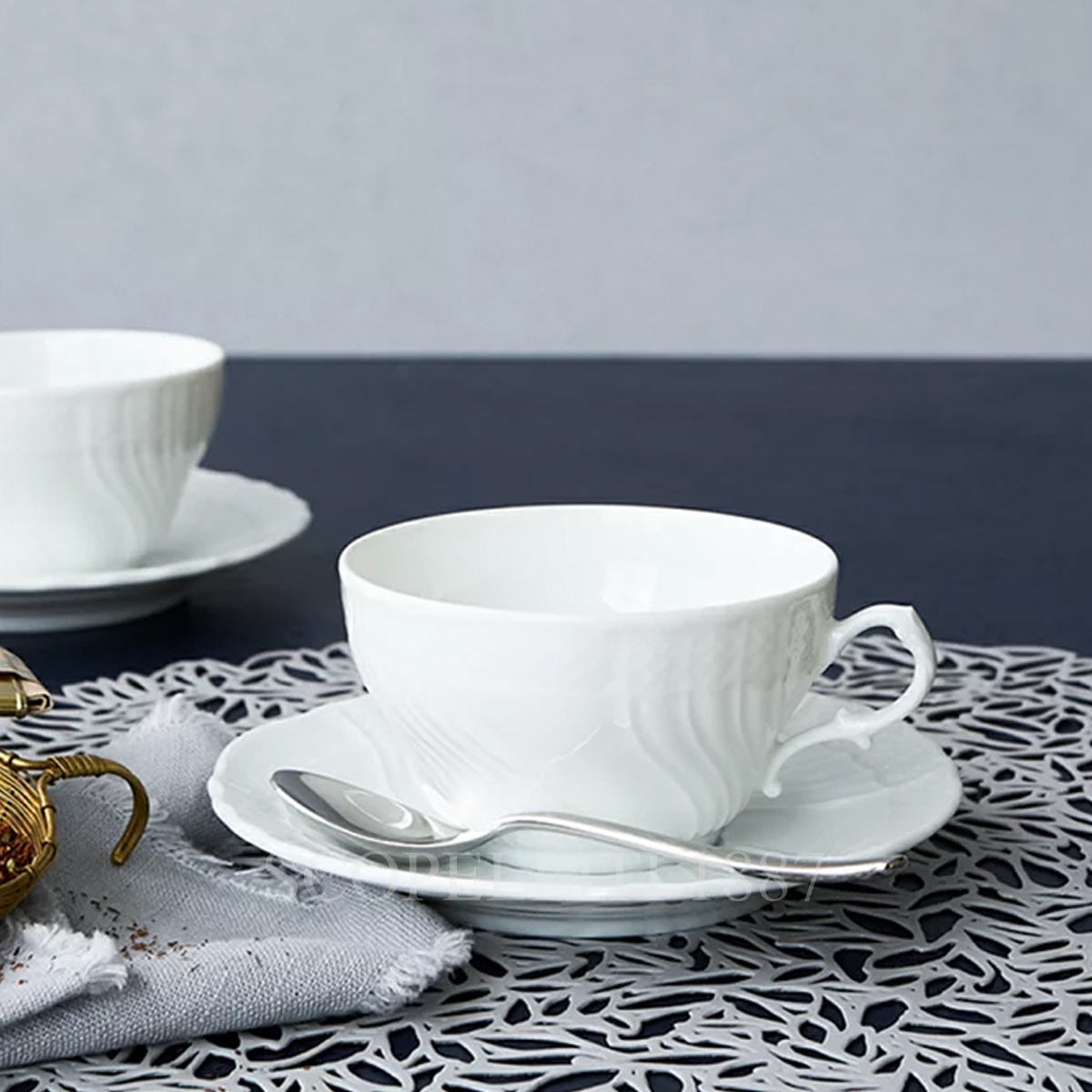 Ginori 5 piece place setting Vecchio Ginori is a dinner set that includes 1 each of the Dinner Plate, Dessert Plate, Bread & Butter Plate and Tea Cup with Saucer. The origins of the sinuous style characteristic of all Vecchio Ginori porcelain were lost during the 1700s. History has left us a small but significant detail; an expression by which it was common to refer to this very shape. This precious remnant of the past allows us to perceive its grandeur and strength still today, rendering it immune, almost alien, to the passage of centuries. In Doccia, the magical place where our Ginori 1735 was born, it was common to refer to the characteristic edging on porcelain dinnerware and other items as the “Saxon-style.” A term which can be ascribed to the 18th-century Germanic tradition, according to which porcelain was made with reliefs similar to woven baskets.Not surprisingly, ozier is the somewhat more technical expression used to refer to this type of relief decoration, the translation of which from German to English is “wicker basket.” A tradition that the Manifattura’s masters have adopted as their own, making the weaves more delicate, the lines more sinuous, with a style and artisan mastery that is uniquely Italian and that has immortalized this simple yet elegant motif.