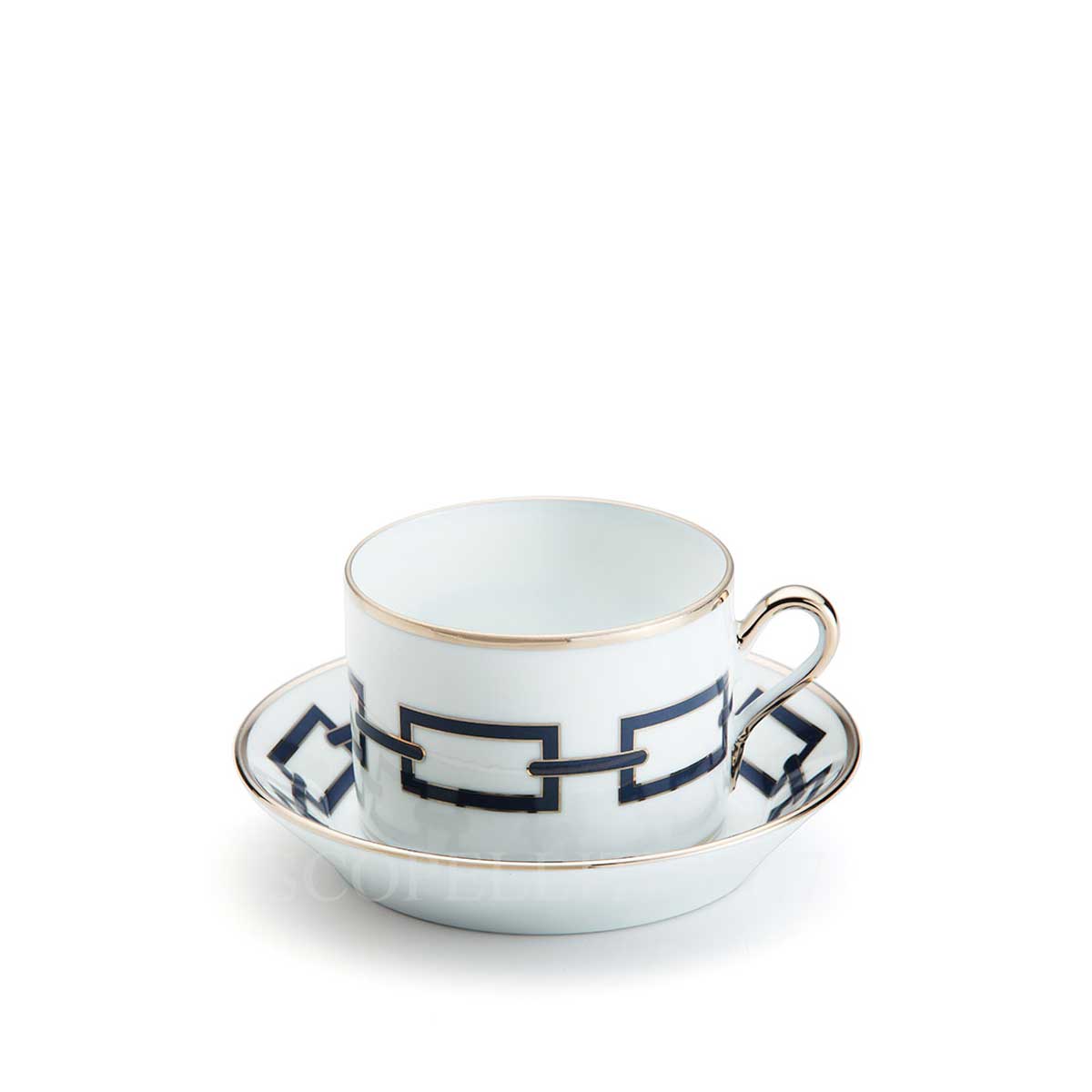 The ginori coffee cup and saucer catene blue brings Gio Ponti’s sophisticated design into the coffee ritual. Featuring a striking sapphire blue chain motif and elegant platinum accents, this fine porcelain set combines timeless style and contemporary elegance. Perfect for enhancing your espresso experience, it pairs beautifully with other pieces from the Catene collection, creating a cohesive and refined table setting. Celebrate the artistry of Ginori 1735 with this exquisite set, ideal as a gift or for elevating daily moments of pleasure.