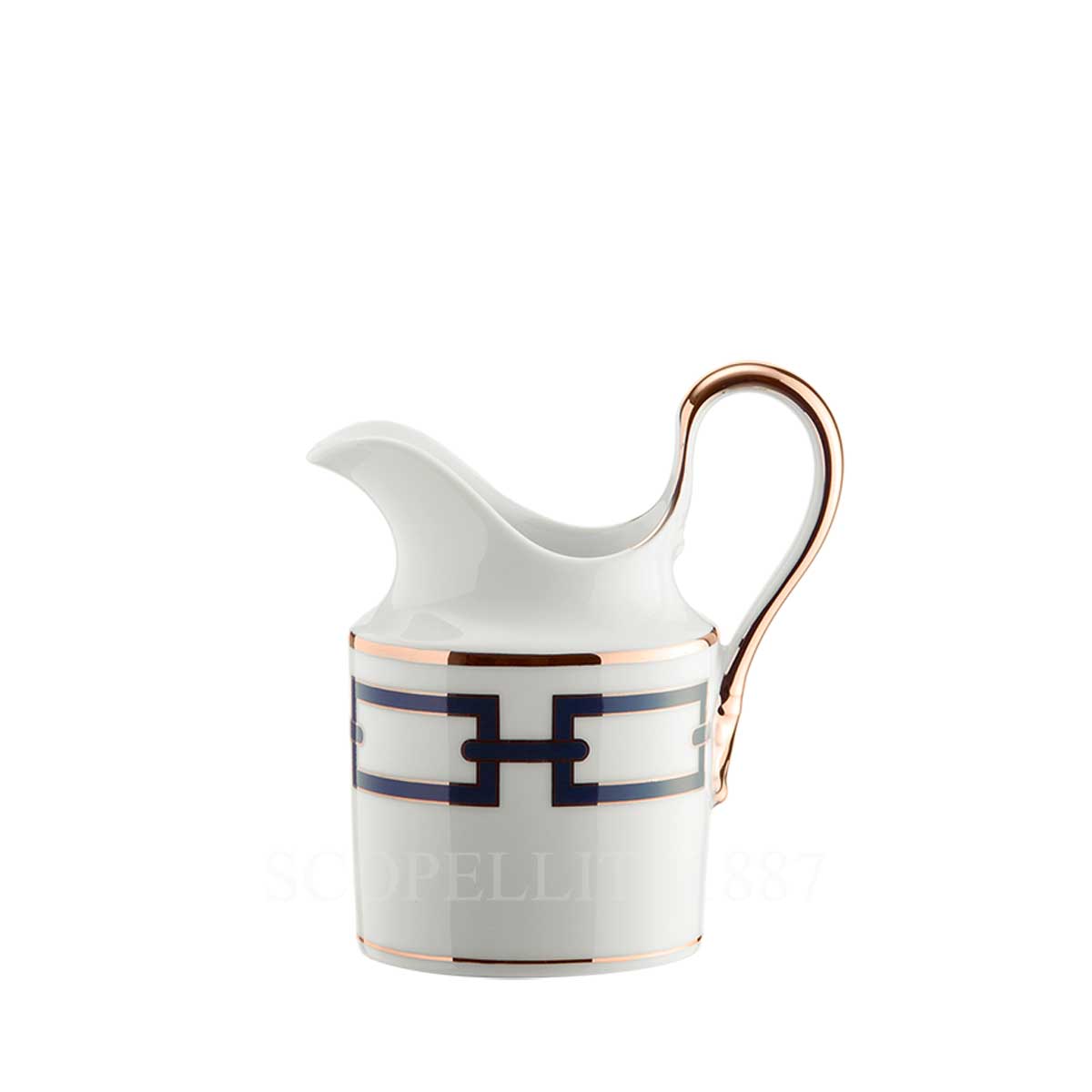 The ginori creamer catene blue is a refined addition to any tea or coffee service. Adorned with Gio Ponti’s iconic sapphire blue chain motif and enhanced with platinum detailing, it combines Italian craftsmanship and timeless design. Whether you’re serving breakfast or hosting an afternoon tea, this elegant porcelain creamer elevates the experience. Its graceful form and luxurious finish make it a perfect companion to other pieces in the Catene collection. Comes in an elegant gift box, ideal for gift-giving.