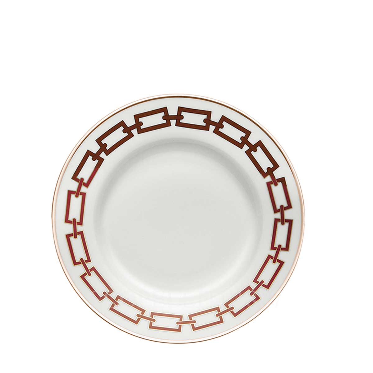 The Ginori Dessert Plate Catene Red is an exquisite piece that brings modern sophistication to your dining table. Featuring Gio Ponti’s signature red chain design with platinum trim, this plate is ideal for serving desserts or appetizers. A beautiful addition to the Catene collection, it’s perfect for elegant dining occasions.
