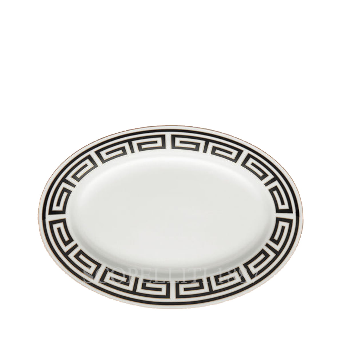 The Ginori Flat Oval Platter Small Labirinto Black combines functionality with iconic design. Featuring Gio Ponti’s timeless Labirinto pattern in black and finished with platinum, this platter is ideal for elegant presentation of appetizers, entrees, or desserts.