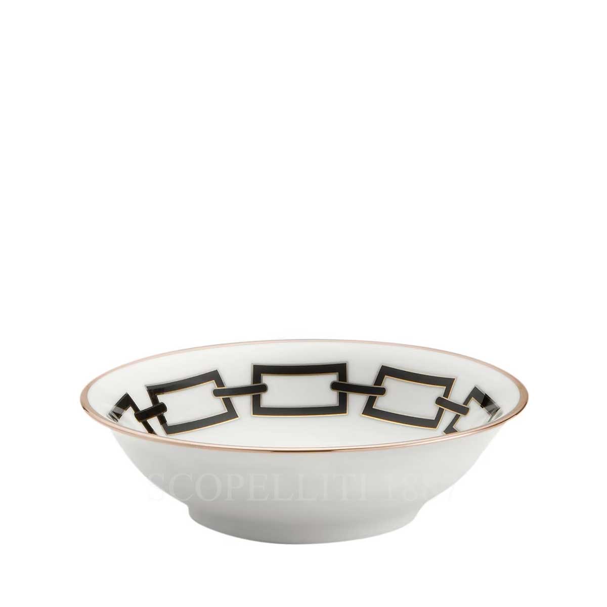 The Ginori Fruit Bowl Catene Black is a sophisticated piece of porcelain art, designed by the legendary Gio Ponti. Crafted from the finest white porcelain, it features an elegant black chain motif accented with platinum, creating a striking yet timeless look. Perfect for serving fruits or simply as a decorative accent, this bowl combines functionality with high-end design. Presented in a luxurious gift box, it is an ideal gift for connoisseurs of Italian craftsmanship and design excellence.