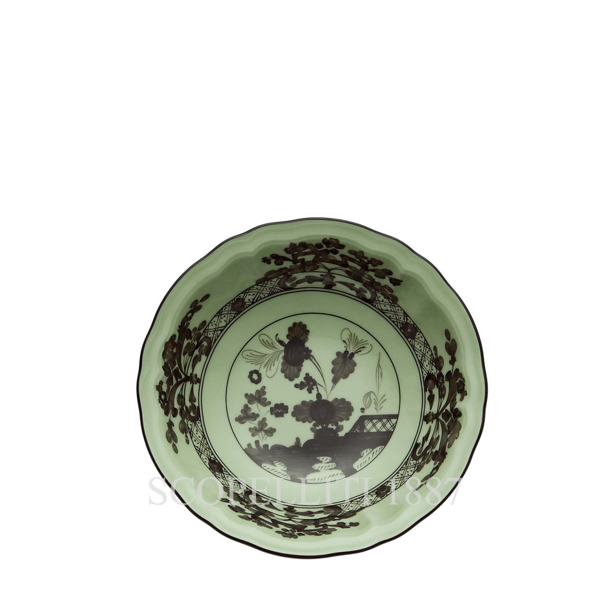 The Ginori 1735 Fruit Bowl Oriente Italiano Bario is a refined porcelain piece that brings an elegant touch to your table. Perfect for presenting fruit or other small items, it adds a sense of sophistication to any occasion. With its soft green tones and intricate floral detailing, the Bario pattern adds an understated yet luxurious charm to your table setting. This fruit bowl is versatile enough to be used for serving fruit, as a decorative piece, or even for holding small items in any room of the house.