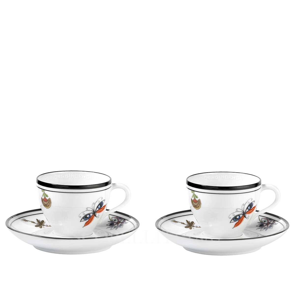 The Ginori Gift Set of 2 Coffee Cups Arcadia White invites you into a world of fantasy and wonder, where extraordinary creatures roam freely, leaving behind traces of joy and mystery. Designed by fashion designer Orazio Stasi, this elegant coffee set blends artistic storytelling with the timeless craftsmanship of Ginori 1735. A tribute to imagination and freedom, the Ginori Gift Set of 2 Coffee Cups Arcadia White features four whimsical characters, each brought to life with distinctive black threading:
