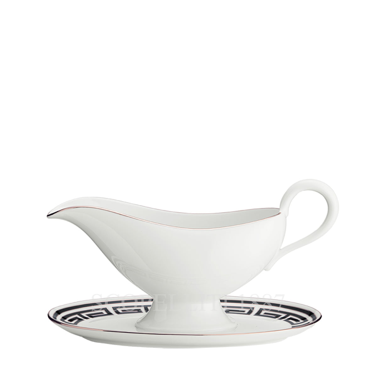 Bring neoclassical design to your life with this porcelain gravy boat Labirinto Nero from Richard Ginori 1735. Combining black and white, it features a logical path of lines that evoke images of mazes and is the perfect combination of ancient culture and modern design. Highlighted by a gold coloured trim and impero shape, it makes an elegant addition to any home. Please note, each Richard Ginori 1735 piece is unique and has been hand decorated by artisans.