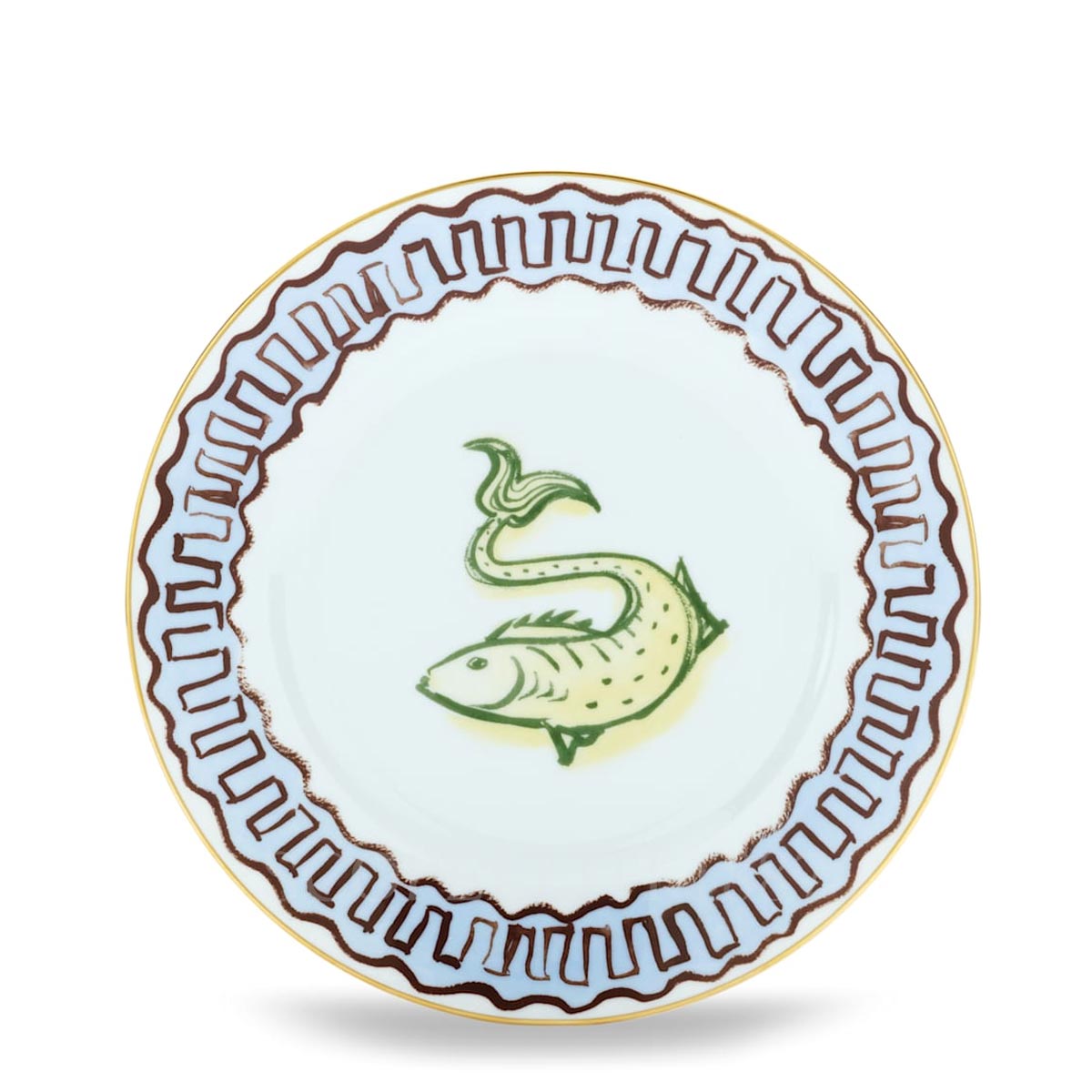 Bring a touch of the fantastical sea to your table with the Ginori Il Viaggio di Nettuno Dessert Plate Fish, created by British designer Luke Edward Hall. This artistic piece blends classical mythology with whimsical design, capturing the essence of Neptune’s underwater world in a bold and imaginative way. Crafted in Italy from fine porcelain, the plate features a stylized fish illustration—colorful, expressive, and full of personality. Hall’s distinctive aesthetic transforms traditional tableware into a statement piece that adds character to any setting. Perfect for serving desserts or displaying as decorative art, this plate is especially well-suited for homes by the sea, coastal retreats, or interiors inspired by the ocean. A thoughtful addition for collectors, design lovers, or anyone drawn to storytelling through objects.