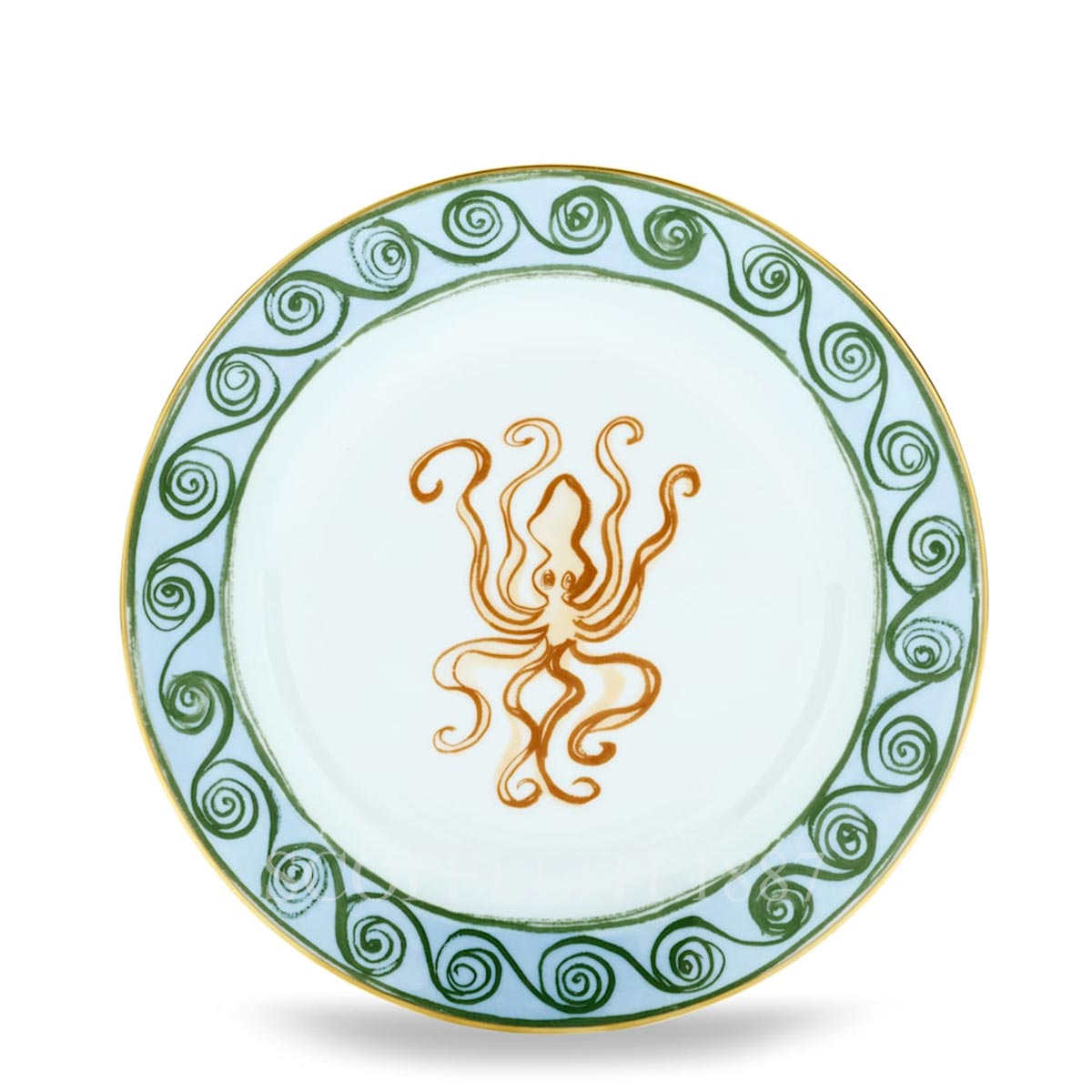 In the Ginori Il Viaggio di Nettuno dessert plate Octopus, embellished with a precious pure gold threading, the soft and delicate Sky Blue is harmoniously interwoven with Terracotta, a warm and sophisticated hue that evokes the timeless elegance of Mediterranean aesthetics. In the center of the plate, a marine figure from the world of Neptune in the guise of an octopus adds a touch of mythology and romance, in perfect continuity with the spirit of Ginori 1735’s Il Viaggio di Nettuno collection, launched in 2019. Imagine a summer dinner en plein air: the colors of the plate blend with the landscape and the warm light of the sunset, while the sea octopus in the center is a detail to be discovered, revealing itself between bites. A moment of stillness, taste and beauty, where the designer dessert plate, ideal for serving desserts, ice cream or fruit, is a small objet d’art that enriches the dining experience. Immerse yourself in the Il Viaggio di Nettuno tableware collection and dare unusual combinations: porcelain plates decorated with mermen, seahorses, octopuses and fish, born from the dreamlike imagination of British designer Luke Edward Hall, offer surprising narratives that stimulate creativity.