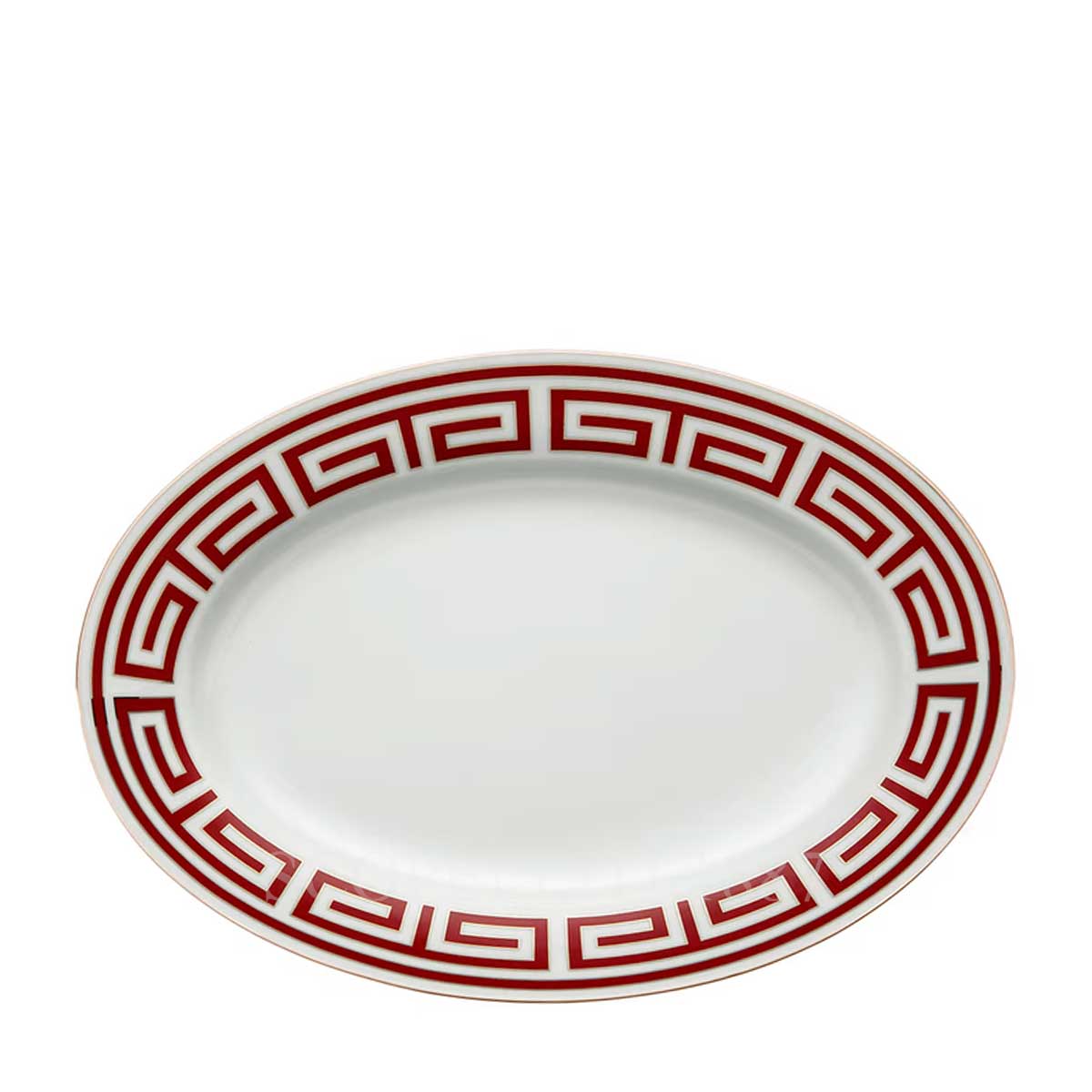 The Ginori Oval Platter Medium Labirinto Red from the Labirinto Scarlatto collection offers the perfect balance between size and elegance. The red labyrinth pattern, complemented by platinum trim, adds a touch of bold sophistication to your table. Ideal for serving main dishes, appetizers, or desserts, this medium-sized platter merges classic Italian design with practical functionality.