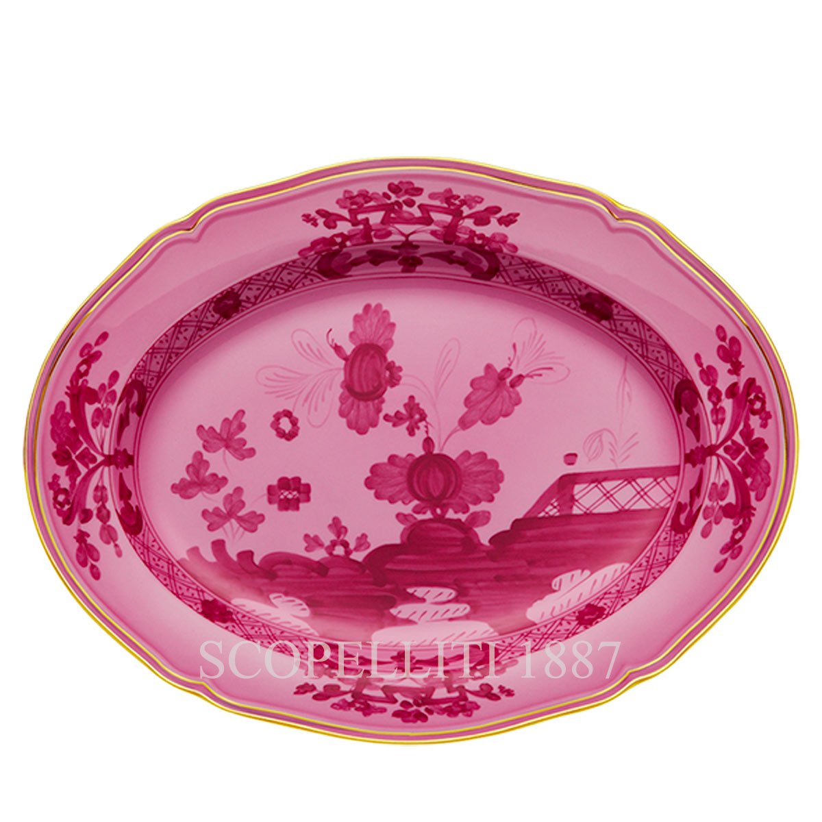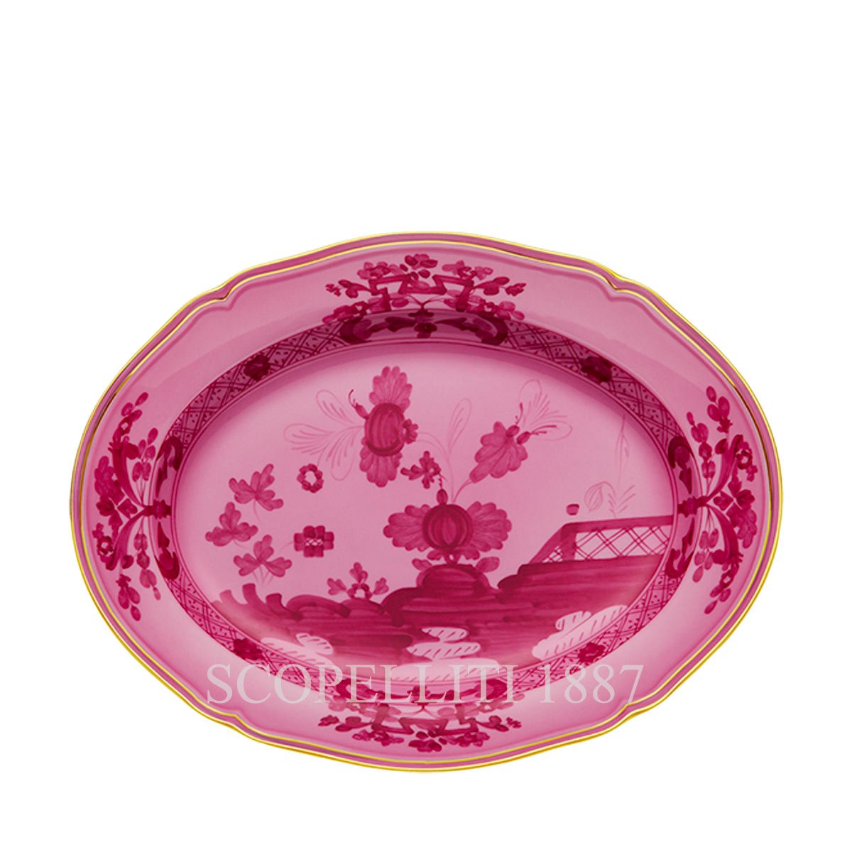Ginori 1735 Oval Platter Small Oriente Italiano Porpora a Refined Dining Piece The Ginori 1735 Oval Platter Small from the Oriente Italiano Porpora collection is a sophisticated piece designed for serving a variety of dishes. Its 34 cm length and 26.4 cm width make it an ideal size for appetizers, side dishes, or desserts, while the elegant Porpora pattern brings a touch of timeless Italian artistry to your table. Crafted with premium Italian porcelain, this platter is not just functional but also a statement piece that adds beauty and refinement to any meal.