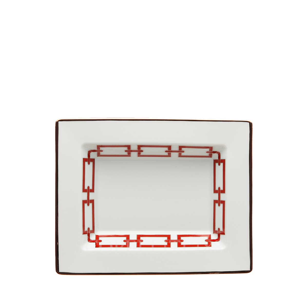Elegant and versatile, the Ginori Rectangular Tray Small Catene Red captures the harmony of form and decoration conceived by Gio Ponti. The vivid red interlocking chain motif, enriched by platinum detailing, adds a sophisticated touch to this compact serving piece. Perfect for presenting small treats, organizing items on a vanity, or enriching your coffee or tea setting, it combines functionality with unmistakable Italian style.