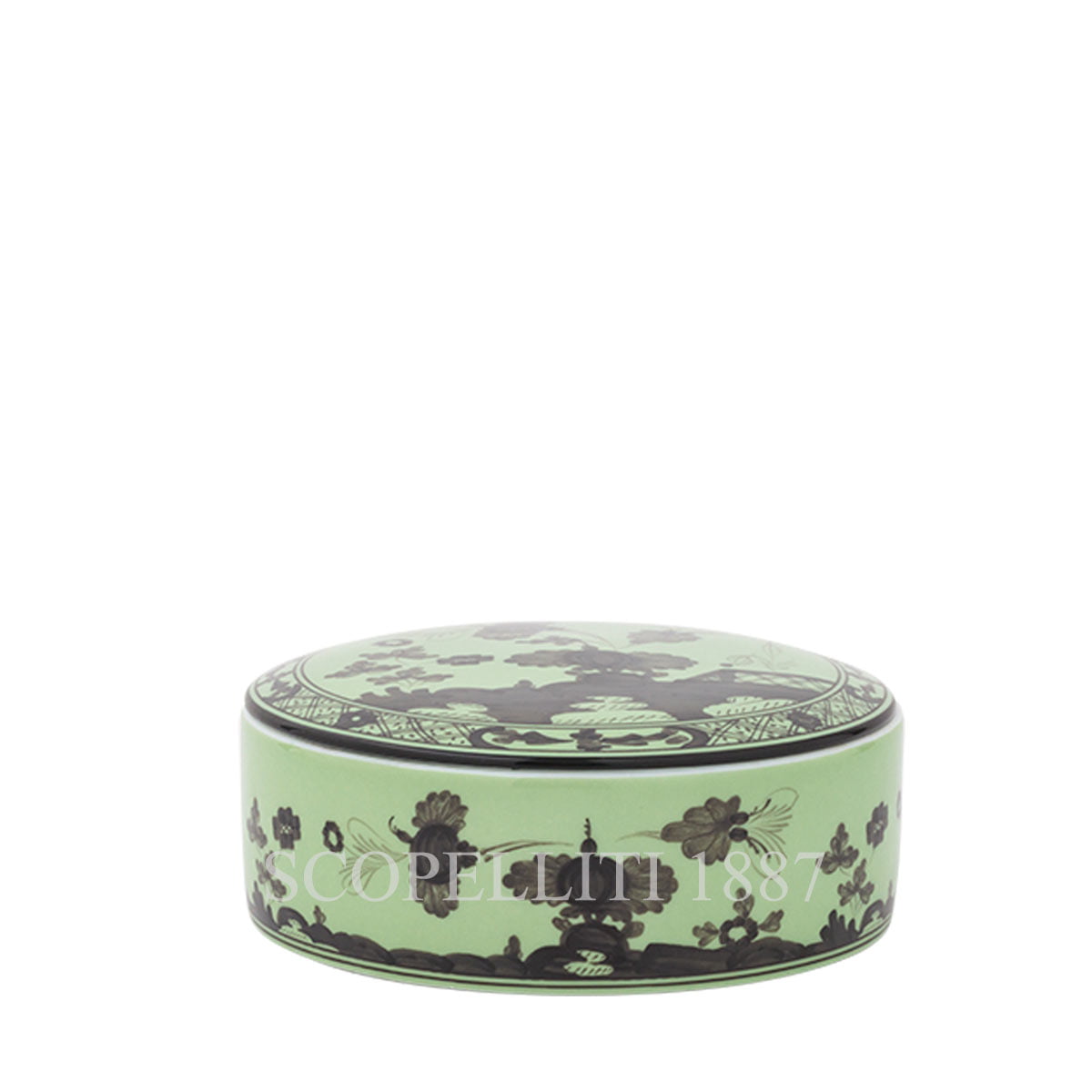 The Ginori 1735 Round Box With Lid Oriente Italiano Bario is a beautifully crafted porcelain piece that combines functionality with artistry. Ginori 1735 Round Box With Lid Oriente Italiano Bario sinuous shape and intricate detailing reflect the exceptional craftsmanship of Ginori 1735, making it not only a practical storage box but also a symbol of good taste and refinement. Featuring a soft barium green pattern, this box from the Oriente Italiano collection adds a touch of understated luxury to any space. Its muted tones fit gracefully into neutral or pastel-colored settings, bringing an air of sophisticated elegance to your home decor. Perfect for storing small jewelry or refined personal items, this box is an ideal addition to a bedroom cabinet, makeup table, or even a desk, where it adds an element of sophisticated beauty. Its versatile design makes it suitable for a variety of settings. As an exceptional gift choice, the Ginori 1735 Round Box With Lid Oriente Italiano Bario is ideal for celebrating special occasions like birthdays or anniversaries. Its thoughtful design and luxurious appeal make it a truly captivating present.