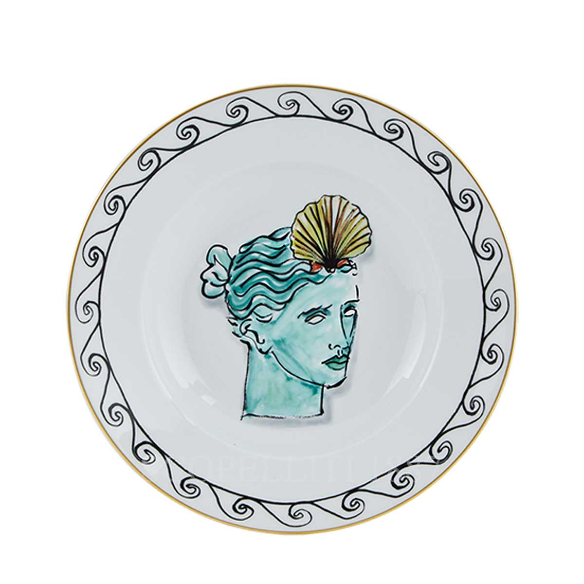 The Ginori Soup Plate Il Viaggio di Nettuno is an exquisite piece from the collection designed by Luke Edward Hall, inspired by Greco-Roman mythology. The plate features vivid mythological motifs and is delicately framed by a pure gold trim that adds luminosity to its intricate design. Crafted from the finest porcelain, this soup plate showcases the creative fusion of classic artistry and contemporary design. Its bold Grecian blue color and the detailed mythological depiction bring Neptune’s legendary voyage to life on your table, making it the perfect serving piece for soups, broths, or as part of an elegant dining setting. A true masterpiece of Italian craftsmanship, the Ginori Soup Plate Il Viaggio di Nettuno captures the essence of mythological storytelling while elevating any dining experience.