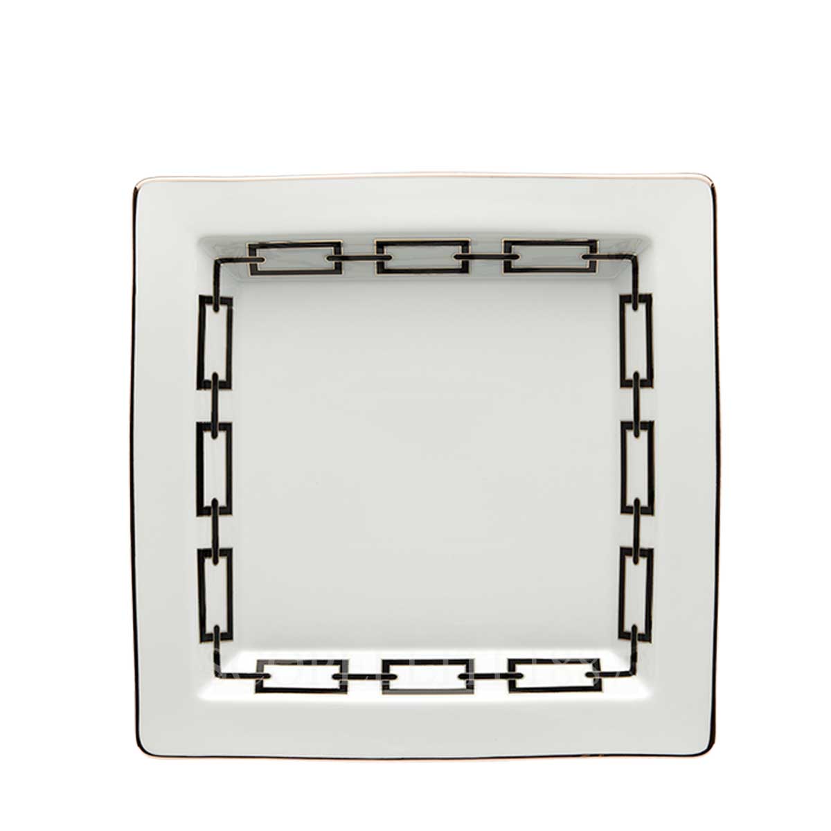 The ginori square tray large catene black reflects the artistic mastery of Gio Ponti, featuring the elegant black chain motif with platinum embellishments. Crafted from exquisite white porcelain, this tray is ideal for refined serving, sophisticated decor, or as a statement centerpiece. Its striking geometric design and luxurious finish make the ginori square tray large catene black a timeless addition to any stylish interior. Perfect for gifting, it comes beautifully packaged in an elegant gift box.