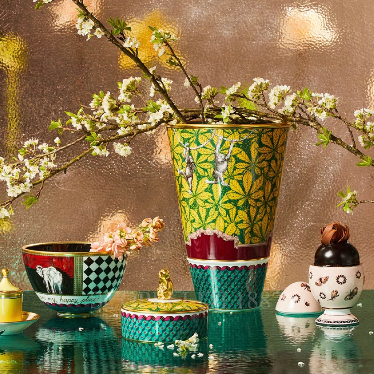 The Ginori Totem Monkey Vase is a stunning porcelain creation that blends eighteenth-century decorative tradition with modern artistic flair. Featuring a symbolic monkey motif, the design represents intelligence and curiosity, rendered in contrasting black and white tones with vibrant colors inspired by the natural world. Gold threading highlights the intricate details, adding a luxurious touch. Part of the Totem collection by Ginori 1735, this vase celebrates the beauty of wildlife through elegant home décor objects. The Ginori Totem Monkey Vase is a meaningful gift or collector’s piece, perfect for those who appreciate craftsmanship, symbolism, and timeless Italian design.