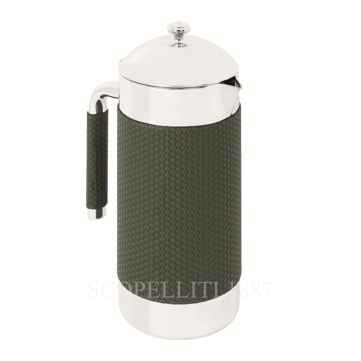 The Giobagnara Pacific Thermal Carafe in leather embodies the perfect blend of exceptional functionality and refined elegance, making it an essential accessory for those who value the finer things in life. Featuring a partially leather-covered exterior, this carafe adds a touch of sophistication to any setting. Its polished stainless steel body not only offers a contemporary and premium aesthetic but also ensures that your beverages are kept at the ideal temperature. Renowned for its understated luxury, Giobagnara presents a collection of creations that seamlessly merge classic elegance with modern design. The Giobagnara Carafe in leather is available in an array of unique leather colors, each meticulously handcrafted to combine traditional craftsmanship with innovative technology. The allure of the leather lies in its rich textures and subtle color variations, making each Giobagnara Thermal Carafe a truly unique piece. With proper care, the leather will maintain its distinctive appearance and luxurious feel over time. Giobagnara is a leader in developing advanced leather finishes that offer exceptional durability and resistance. To explore our collection of printed calfskin Bellagio leather finishes or to inquire about customized options and special colors, please contact us via WhatsApp. You can specify your choice of leather in the notes during checkout.