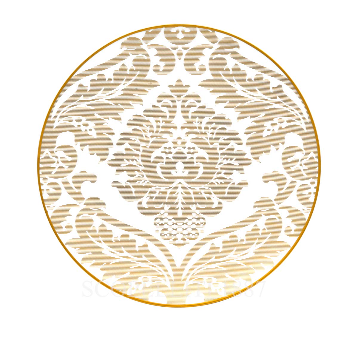 Since 1912, Maison Haviland has elegantly illustrated its collaboration with the Ritz Hotel Paris, creating porcelain that embodies the essence of luxury and refinement. For the Damassé collection, Haviland draws inspiration from the silk brocade used to furnish this legendary venue. The subtle weave effects are masterfully interpreted in fine porcelain, with accents of satin gold and variations of royal blue—the iconic hues of the Parisian palace. Haviland Damassé Ritz Paris Presentation Plate, This presentation plate or underplate combines timeless craftsmanship with a nod to historic French elegance. Measuring 32 cm (12.6 in) in diameter, it is designed to elevate fine dining experiences, adding distinction to both formal and intimate settings.