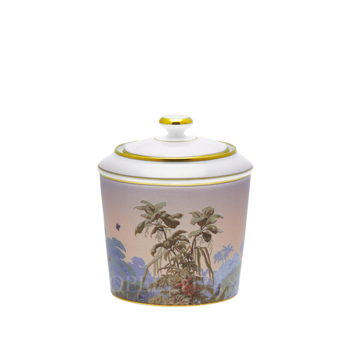 The Haviland Le Brésil Sugar Box is a refined piece of Haviland porcelain crafted in Limoges, France. Part of the vibrant Le Brésil collection, it is born from the collaboration between Maison Haviland and the prestigious Zuber Manufacture, the world’s oldest panoramic wallpaper producer still using traditional woodblock printing since 1790. Its design draws inspiration from Joseph Fuchs’ 1862 masterpiece, which depicts the Amazon rainforest as a lush tapestry of exotic plants and wildlife. This Haviland porcelain creation features peacocks, cranes, flamingos, macaws, pheasants, and hummingbirds with brilliantly colored plumage, all set against a rich backdrop of rivers and mangroves. Perfect for both display and function, this porcelain tableware from France adds a touch of tropical elegance to any tea or coffee service, complementing other pieces from the Le Brésil cabaret set.