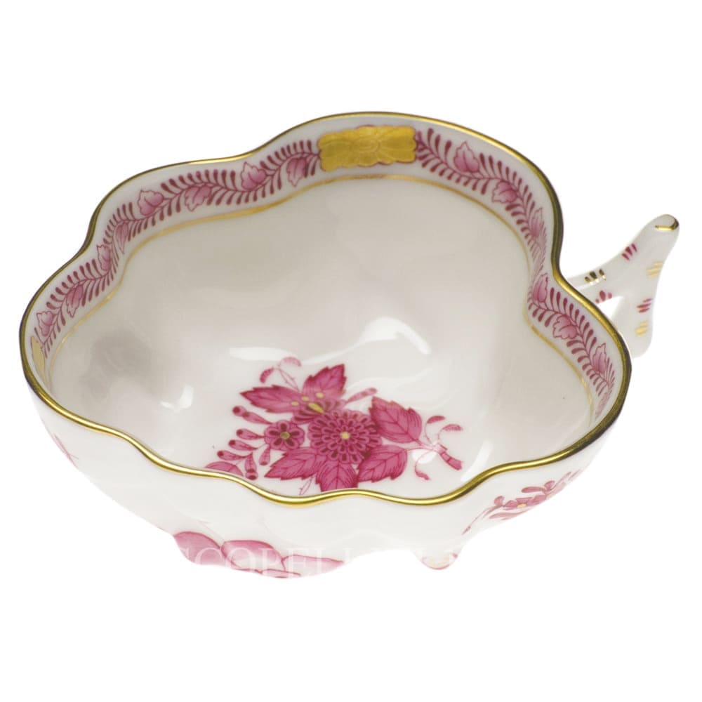 Herend hand painted Sugar Bowl 00492-0-00 AP Apponyi Pink Form: Osier 1 pc – 10,5 x 8,5 cm h 4 cm (4.13″L x 3.34″W x 1.57″H) We are official distributor of Herend Porcelain, that is the world famous Porcelain Manufactory, operating for over 180 years. Herend is synonymous for unique, hand painted, master crafted porcelain. Apponyi, one Herend Porcelain Manufactory’s most renowned décors, was developed starting from the Fleur des Indes décor. In the centre of the plate it is possible to see a motif of a peony encompassed by leaves. A garland of stylized leaves runs all around the edge of the well and it is interrupted periodically by carved gilded rosettes. The ledge shows the contoured pattern of a flower surrounded by six leaves with a decoration of brilliant specks of gold.