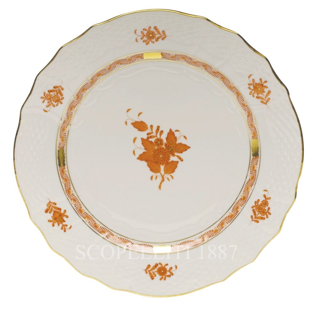 Herend hand painted Dinner Set for 12 Persons AOG Apponyi Orange on the Rocaille form. Herend Apponyi Dinner Set for 12 Persons 41 pcs AOG Orange Rocaille This set can be Personalized for free with initials or a date. Call us to find out more. Originally created in 1930 in a raspberry shade for Count Albert Apponyi, the pattern features a center motif of a stylized peony surrounded by a garland of leaves with 24K gold rosettes. It is available in multiple color options. The Dinner Set contains the following porcelain items: 12 pc – Dinner Plate – Ø 28,5 cm (11.25″D) 1527-0-00 AB 12 pc – Soup Plate – Ø 24,5 cm (9.65″D) 1503-0-00 AB 12 pc – Dessert Plate – Ø 21 cm (8.25″D) 1520-0-00 AB 1 pc – Salad Bowl – Ø 25,5 cm (10″D) 1180-0-00 AB 1 pc – Oval Dish – 41,8 x 32,5 cm (16.5″L x 12.8″W) 1101-0-00 AB 1 pc – Oval Dish – 38 x 28,5 cm (15″L x 11.25″W) 1102-0-00 AB 1 pc – Sauce Boat – 26,5 cm x 20,5 cm h 9,5 cm (10.4”L x 8”W x 3.74”H) 1222-0-00 AB 1 pc – Soup Tureen – 36,5 cm x 24,5 cm h 26 cm C 5.2 l (14.37″L x 9.64″W x 10.23”H) 1002-0-02 AB Total: 41 Herend porcelain pieces Please note that delivery of Herend Porcelain handmade items takes up to 20 – 45 working days after you place your order (excluding Weekends and Bank Holidays).
