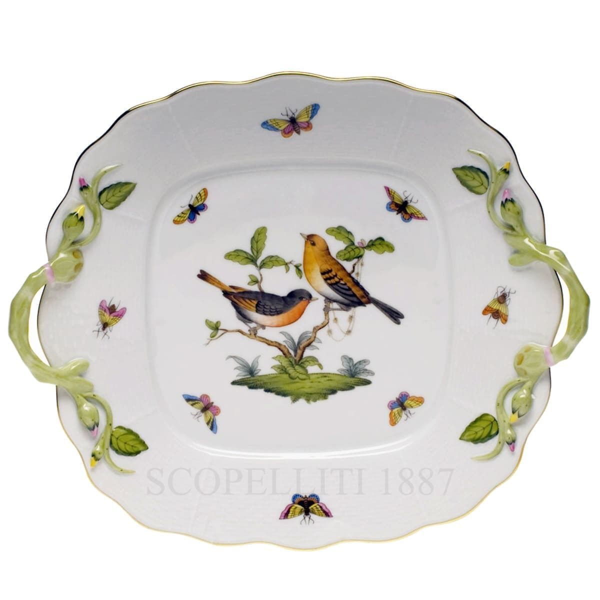 Herend hand painted Square Cake Plate with Handles 00430-0-00 RO Rothschild