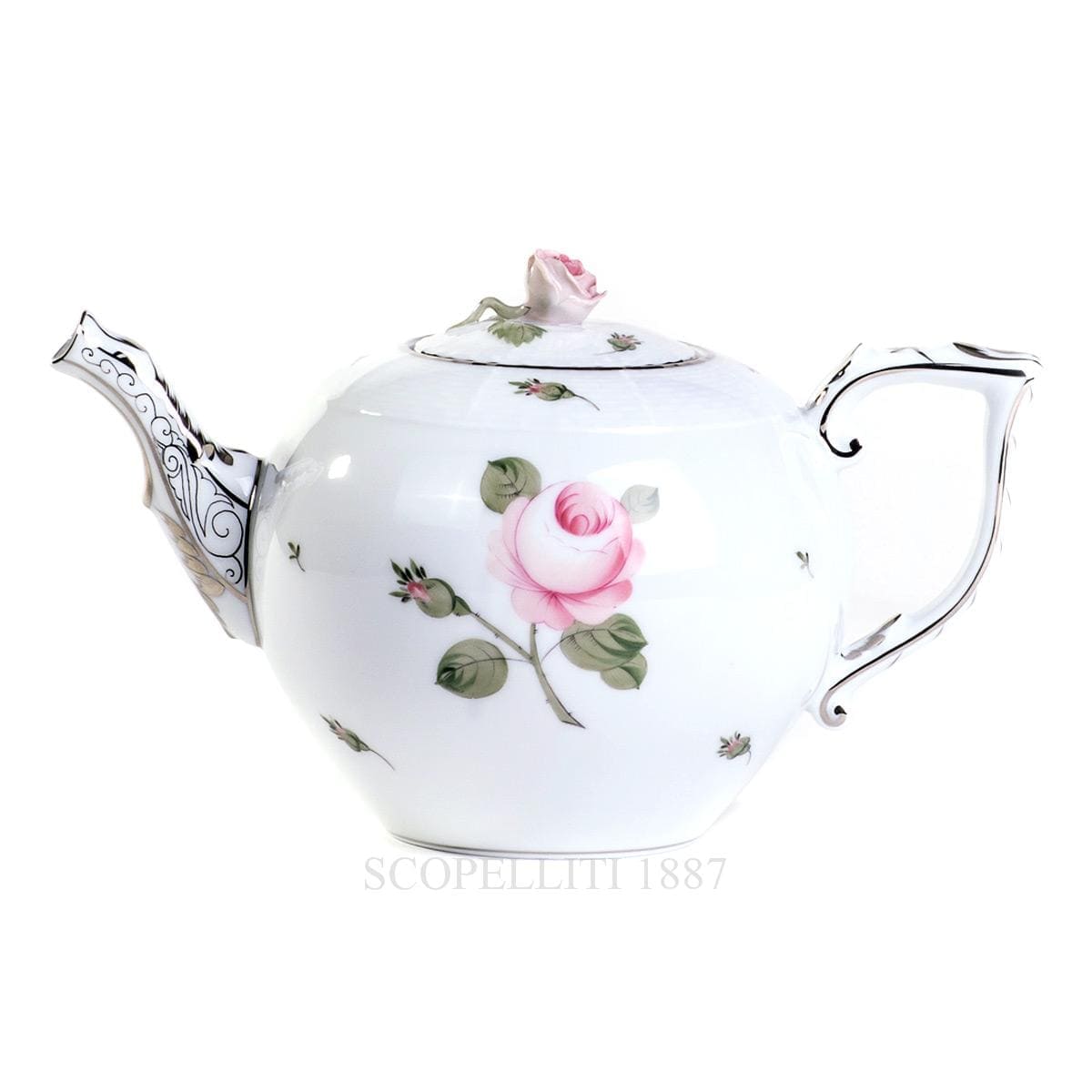 Herend hand painted Teapot with Rose 01604-0-09 VGR-PT Viennese Rose Platinum