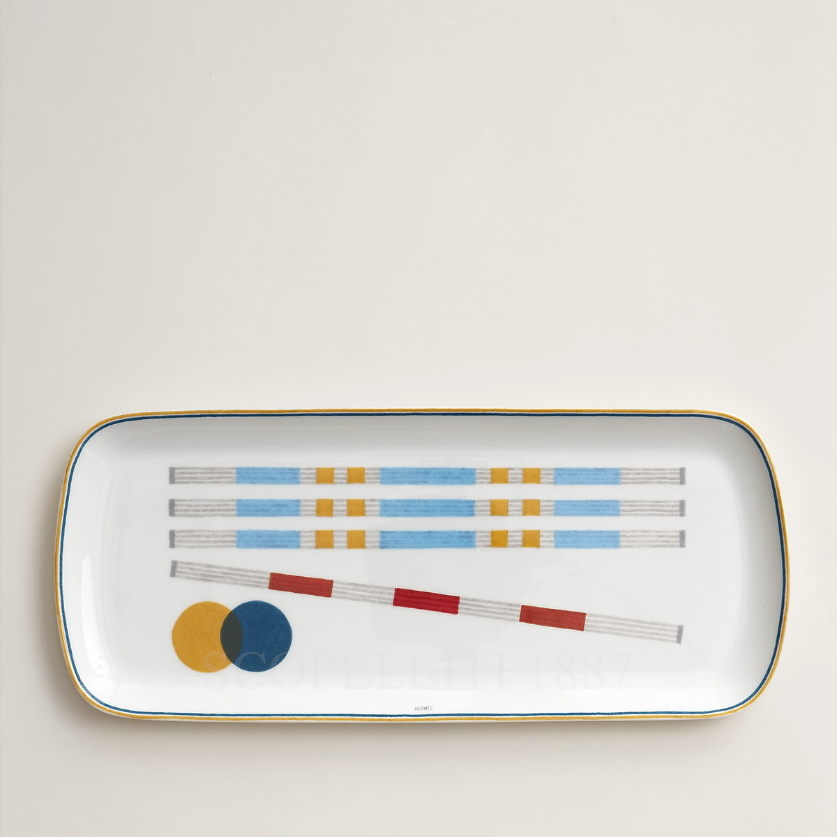 The Hermes Cake Platter Saut is a celebration of equestrian heritage, seamlessly blending artistry with functionality. Crafted from fine porcelain, it features a striking design that captures the essence of showjumping, with playful design in warm and vibrant hues. The delicate rim adds a refined touch, enhancing its understated elegance. Both practical and stylish, this Hermes plate brings you a dynamic energy, becoming a reminder of Hermès’ timeless craftsmanship and passion for the equestrian world. Hermes Cake Platter Saut is complete with a Hermès gift box, Bolduc ribbon, and the iconic orange Hermès shopping bag.