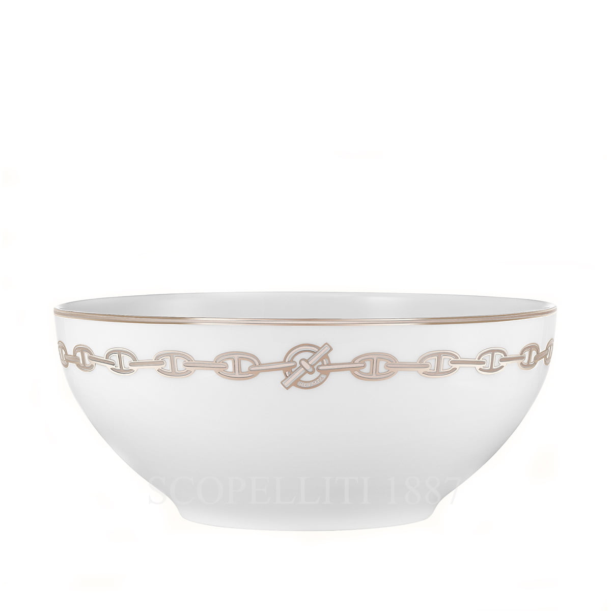 The harmonious combination of classic, laconic shapes, snow-white finest porcelain and daring patterns will make your serving truly memorable. The Chaine d’Ancre Platine tableware collection was inspired by a line of exclusive luxury accessories created and released earlier by Hermès. In particular, is reminiscent to the silver bracelet first appeared in 1938 and made the brand famous. Each item has a laconic but quite innovative look. A massive silver anchor chain frame adorns every single piece of this exceptional collection.