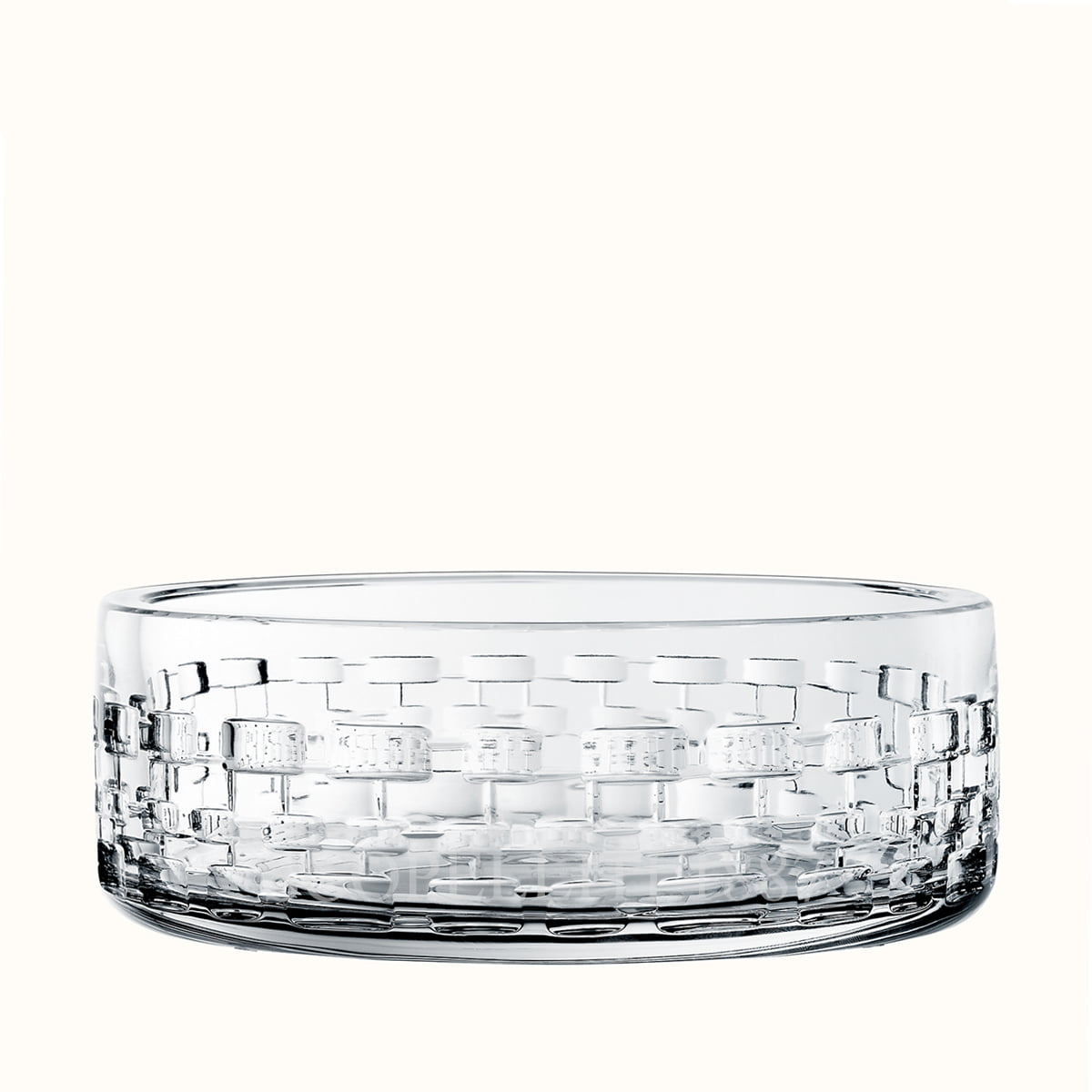 The Hermes Crystal Large Bowl Adage features a luxurious silhouette with a distinctive geometric pattern. The design consists of meticulously cut, stacked rectangular motifs that wrap around the the glass, creating a rhythmic, architectural aesthetic. This refined Hermes bowl is a part of a high-end Hermes glassware collection, perfect for serving whiskey or other fine spirits with an air of sophistication and elegance. The Hermes Crystal Large Bowl Adage comes beautifully presented in an elegant Hermès gift box, adorned with the signature Bolduc ribbon and accompanied by the iconic orange Hermès shopping bag, making it a perfect gift or collector’s piece.