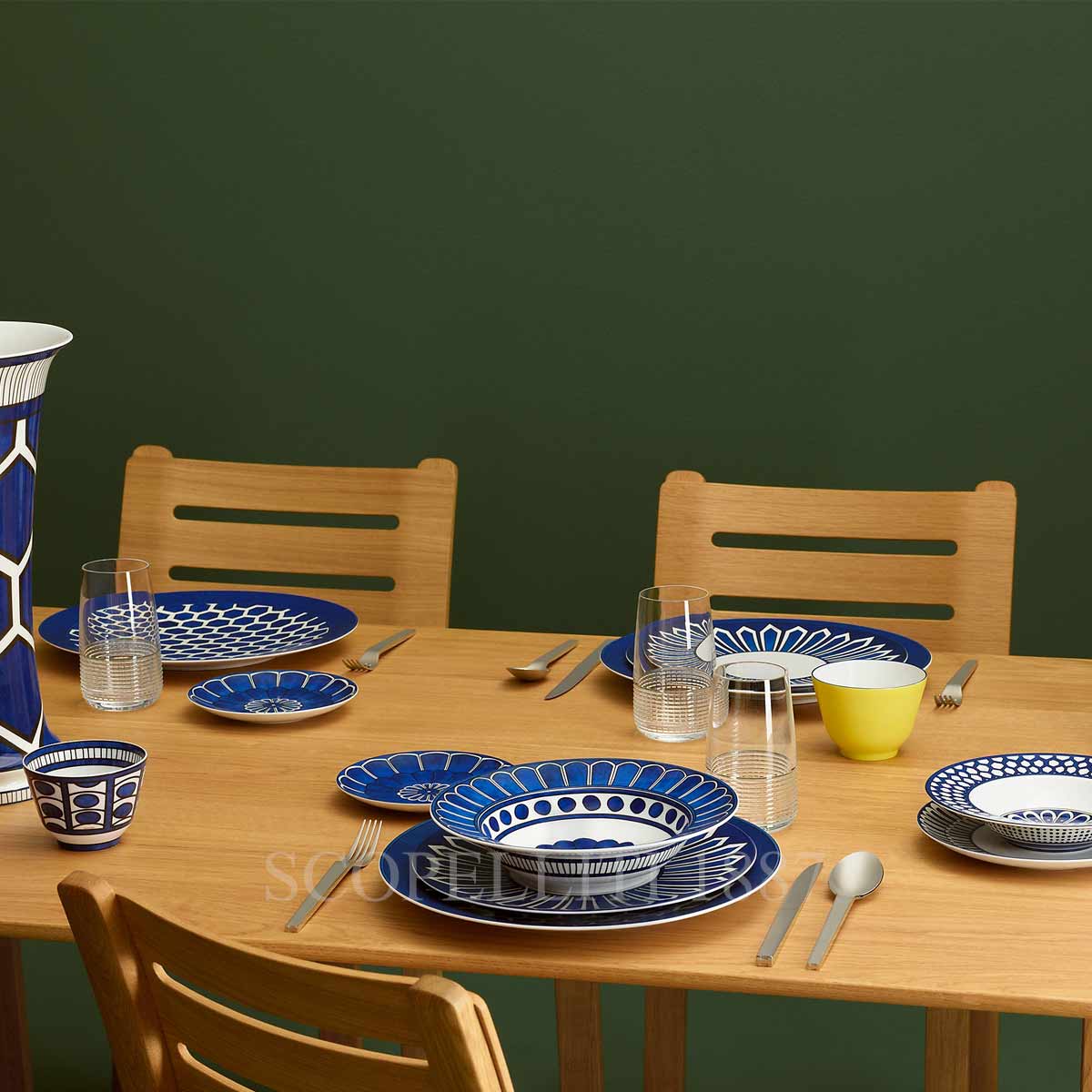 Ideal for everyday meals or formal entertaining, this plate accommodates multi-course dining, layered table settings, or even canapés and starters. Its deep nomadic blue tones harmonize beautifully with crisp white porcelain, offering a versatile foundation for sophisticated table arrangements.