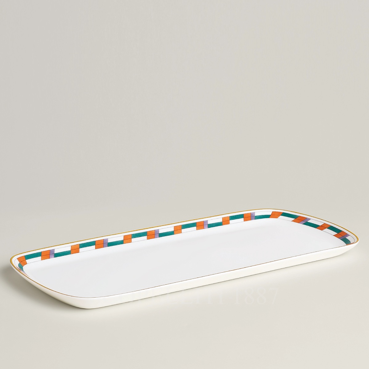 Designed by Nigel Peake, the collection transforms the purity of kaolin white porcelain into a graphic composition of vibrant friezes and geometric motifs. Inspired by the language of musical meter, the delicate watercolor designs introduce a sense of movement and visual cadence to the table. Each element carries its own decorative rhythm, inviting endless combinations, layering, and personal expression.
