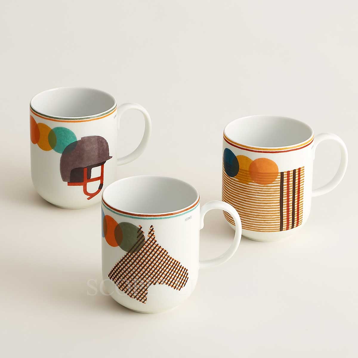 - Number of pieces: 3 (1 Hermes Mug Saut Casque, 1 Hermes Mug Saut Cheval and 1 Hermes Mug Saut Couverture)