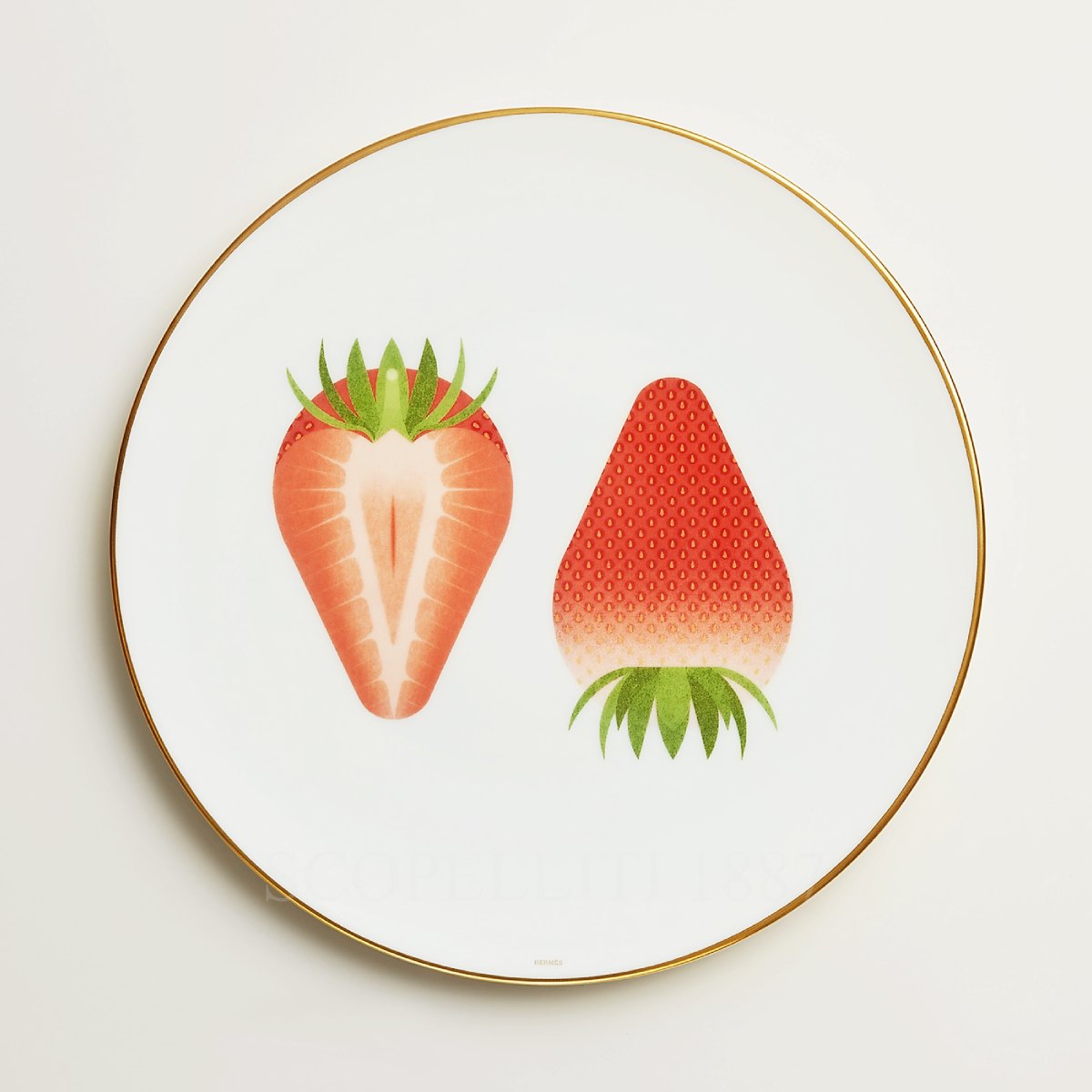 Bring playful elegance to your table with the brand new Hermes Kaorumi Dessert Plate Strawberry, a refined porcelain creation from the newest Hermes tableware collection.