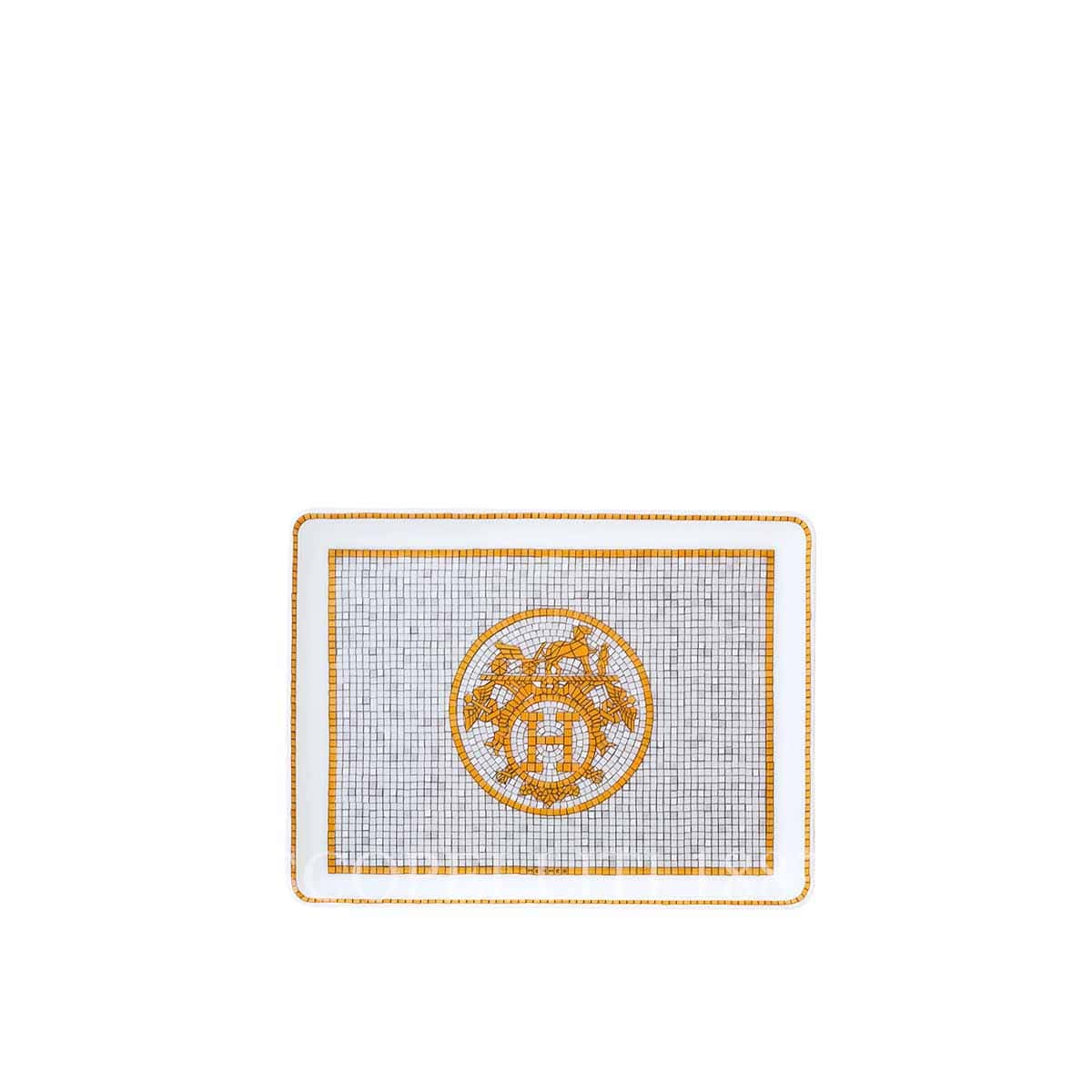 The Hermès Mosaique au 24 Sushi Plate comes beautifully presented in an elegant Hermès gift box, adorned with the signature Bolduc ribbon and accompanied by the iconic orange Hermès shopping bag, making it a perfect gift or collector’s piece.