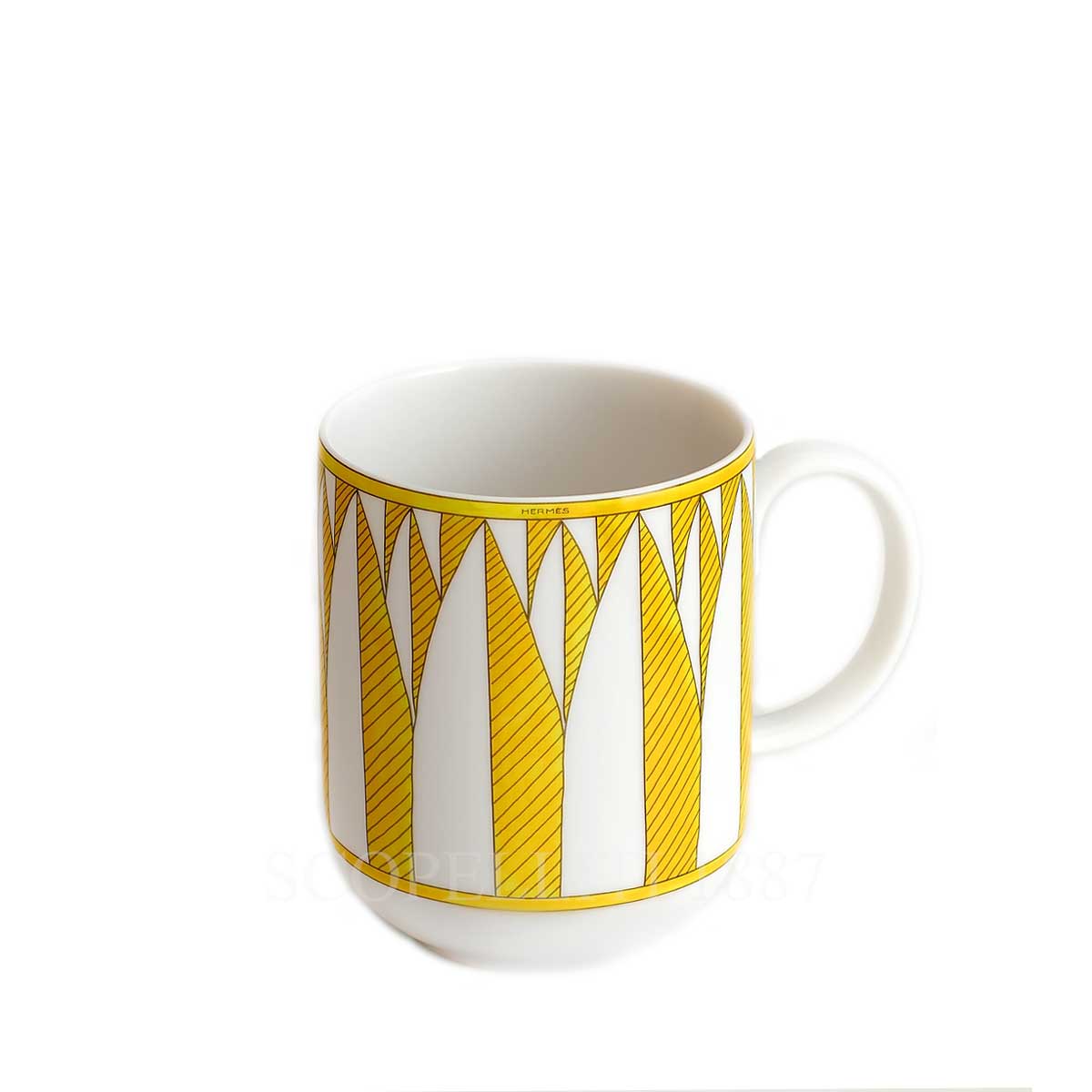 Hermès Soleil d’Hermès porcelain mug n°2 with vibrant yellow and white sun‑inspired motifs — ideal for serving coffee, tea, or warm beverages with refined elegance.