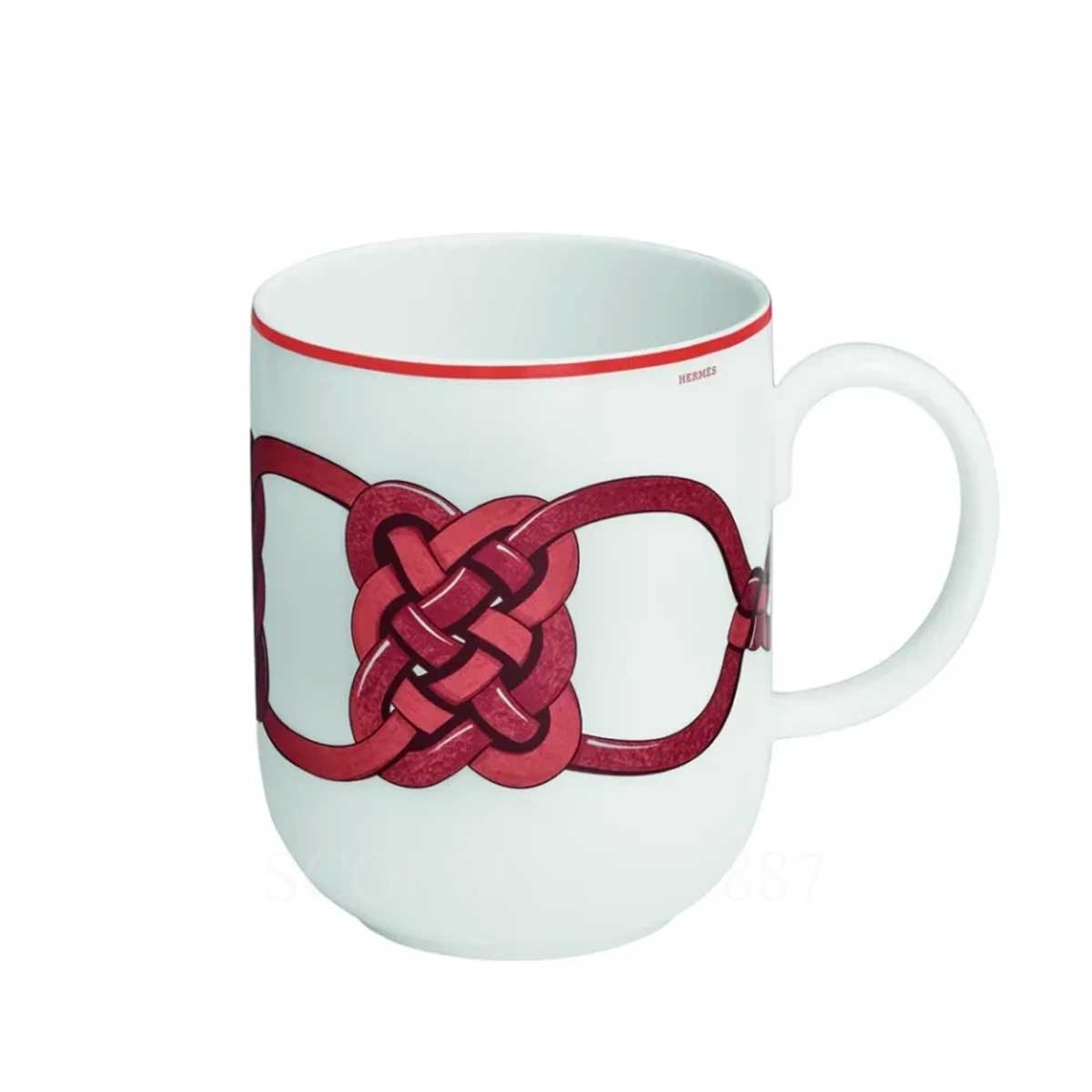 Hermes Mug Tressages Equestres continues the collection’s signature equestrian-inspired aesthetic, featuring an intricate braided design that mimics finely woven leather. A thin red border outlines the cup, adding a refined and understated elegance. The blend of textures and colors reflects Hermès’ expertise in luxury design, making this piece a sophisticated addition to any dining set. Perfect for complementing the matching dinnerware, this Hermes Mug Tressages Equestres embodies artistry and functionality.