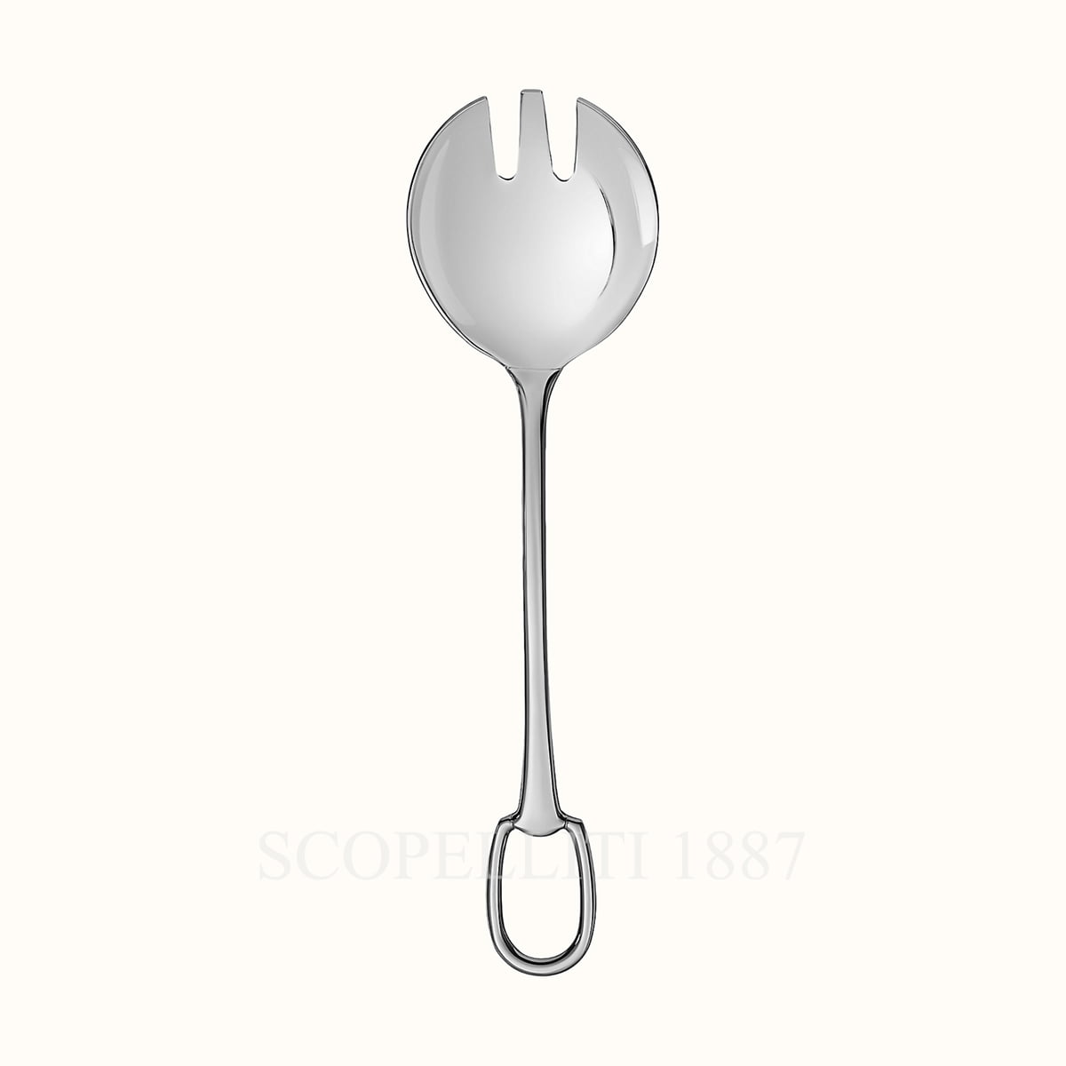 The Hermes Salad Serving Fork Attelage in stainless steel effortlessly blends timeless elegance with exceptional craftsmanship. Drawing inspiration from Hermès’ equestrian heritage, this fork features a distinctive design that marries tradition with modern sophistication. The Hermes Salad Serving Fork Attelage comes beautifully presented in an elegant Hermès gift paper bag, adorned with the signature Bolduc ribbon and accompanied by the iconic orange Hermès shopping bag, making it a perfect gift or collector’s piece. Crafted from premium, corrosion-resistant stainless steel, it offers durability for everyday use while maintaining a luxurious appearance. The ergonomically balanced handle, inspired by equestrian tack, ensures comfort and refinement at every meal. Perfect for casual dining or special occasions, this luxury Hermes Salad Serving Fork Attelage elevates your table setting, making it an ideal choice for those who appreciate designer flatware and exquisite tableware.