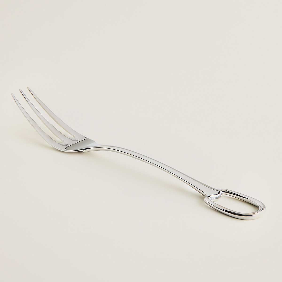 The Hermes Serving Fork Attelage in stainless steel effortlessly blends timeless elegance with exceptional craftsmanship. Drawing inspiration from Hermès’ equestrian heritage, this fork features a distinctive design that marries tradition with modern sophistication. The Hermes Serving Fork Attelage comes beautifully presented in an elegant Hermès gift paper bag, adorned with the signature Bolduc ribbon and accompanied by the iconic orange Hermès shopping bag, making it a perfect gift or collector’s piece. Crafted from premium, corrosion-resistant stainless steel, it offers durability for everyday use while maintaining a luxurious appearance. The ergonomically balanced handle, inspired by equestrian tack, ensures comfort and refinement at every meal. Perfect for casual dining or special occasions, this luxury Hermes Serving Fork Attelage elevates your table setting, making it an ideal choice for those who appreciate designer flatware and exquisite tableware.