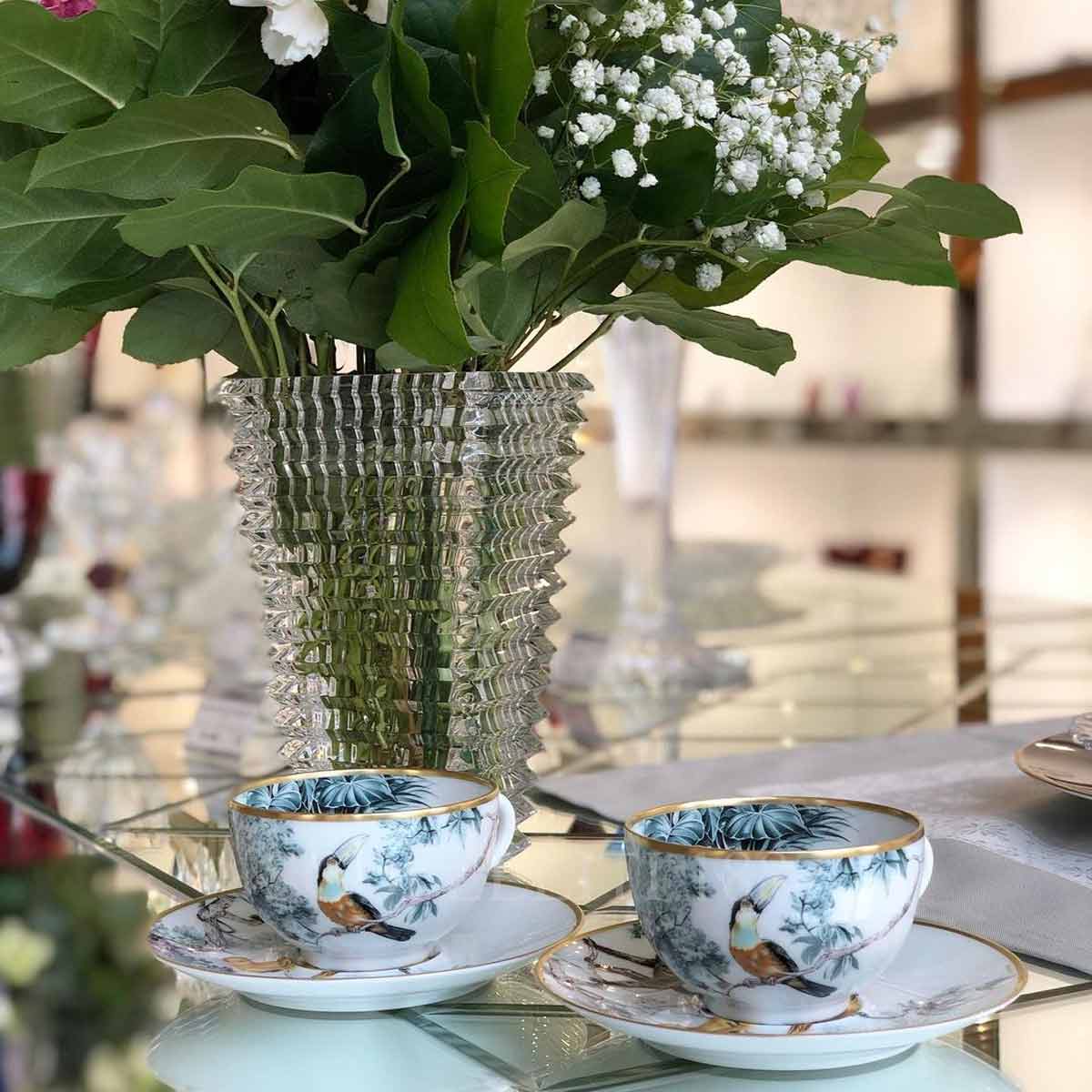The Hermès Tea Cup Carnets d’Equateur – Set of 2 tea cups with 2 saucers, presented in the iconic Hermès box – beautifully captures the brand’s dedication to timeless design and artistry. This set merges nature-inspired illustrations with Hermès’ signature craftsmanship, offering a perfect balance of functionality and elegance. An exquisite addition to any tea service, it’s ideal for collectors and tea enthusiasts who appreciate sophisticated design and luxury in every detail. Crafted from Limoges porcelain, each Hermès tea cup Carnets d’Equateur is adorned with intricate wildlife sketches by renowned French artist Robert Dallet. These designs, enhanced by grey-blue foliage and luxurious 24-carat matte gold trim, bring nature’s beauty to life in every detail. The set includes two tea cups with saucers and is presented with an Hermès shopping bag and ribbon, making it an ideal gift that exudes sophistication and artistry. Experience the elegance of the Hermès Tea Cup Carnets d’Equateur today.