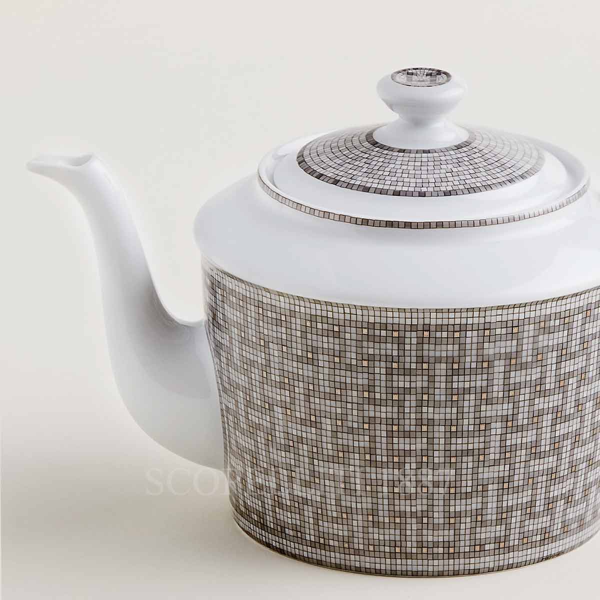 Experience the elegance of the Hermès Tea Set Mosaique au 24 Platinum, a beautiful addition to any collection or a perfect luxury gift for someone special.
