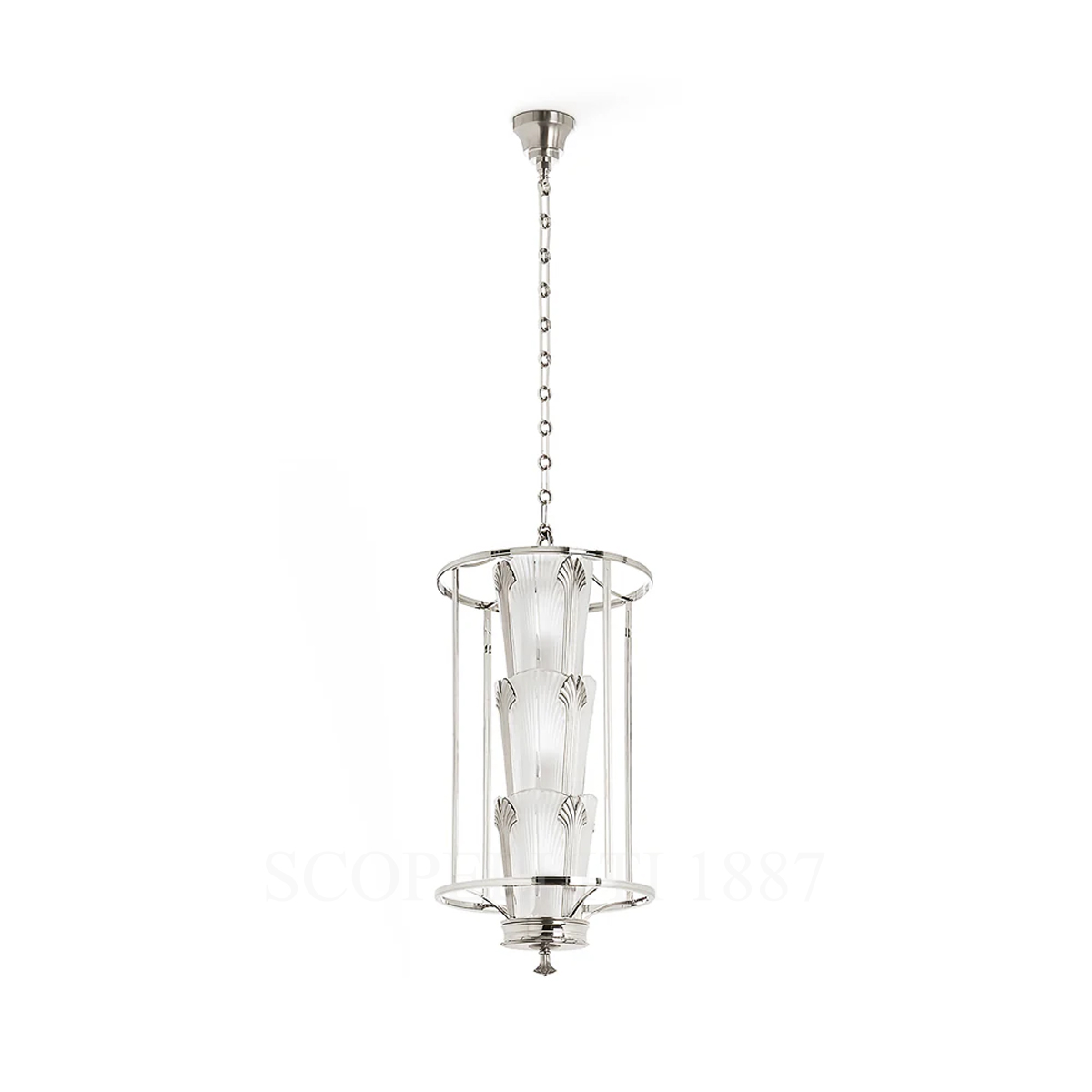 Sculptural Light Inspired by Nature The Lalique Ginkgo Lantern is a refined tribute to nature’s harmony and Art Deco geometry, born from the collaboration between crystal master Lalique and bronze artisan Delisle. This exceptional piece is inspired by a historic chandelier from the 1930s, originally created for the Intercontinental Hotel, and revisited through the lens of contemporary craftsmanship. Inspired by the Ginkgo Biloba tree—a sacred Eastern symbol of longevity, hope, and prosperity—this sculptural lantern celebrates the leaf’s symmetrical form through satin-finished crystal elements framed by intricately engraved nickel bronze. The interplay of light and crystal creates a refined and poetic presence, ideal for prestigious interiors. Each lantern is the result of meticulous handcraftsmanship, combining precision, balance, and excellence in every detail. The Ginkgo collection embodies the artistic legacy of two storied maisons and the pursuit of timeless elegance.