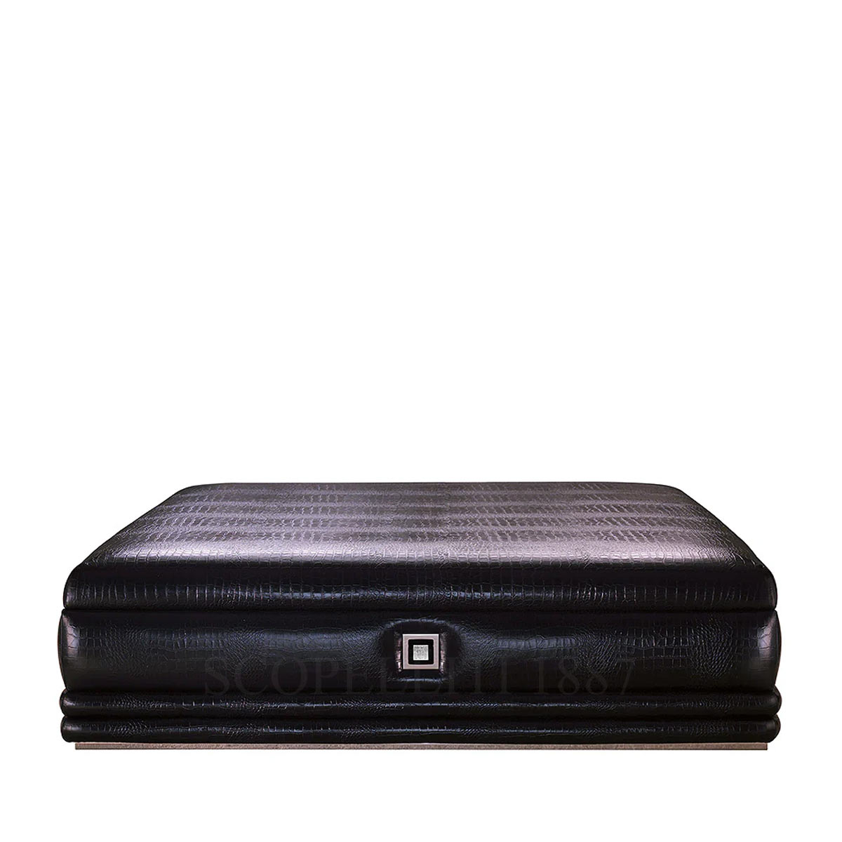 - Materials: Clear Crystal, Black Lacquered Wood, Black Croco-Printed Leather