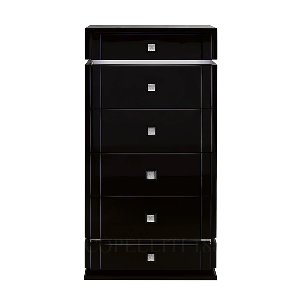 A Tribute to Femininity in Crystal and Lacquer The Lalique Masque de Femme Tallboy is a poetic celebration of beauty and mystery. Inspired by the iconic 1935 panel created by René Lalique, this tall cabinet reveals the serene face of a woman surrounded by aquatic life—symbolizing the timeless bond between femininity and nature. The contrast between the clear crystal and the sleek black lacquered finish creates a sophisticated visual harmony. Designed by Lady Tina Green and Pietro Mingarelli for Lalique Maison, this numbered edition brings sculptural elegance and refined artistry into contemporary interiors.