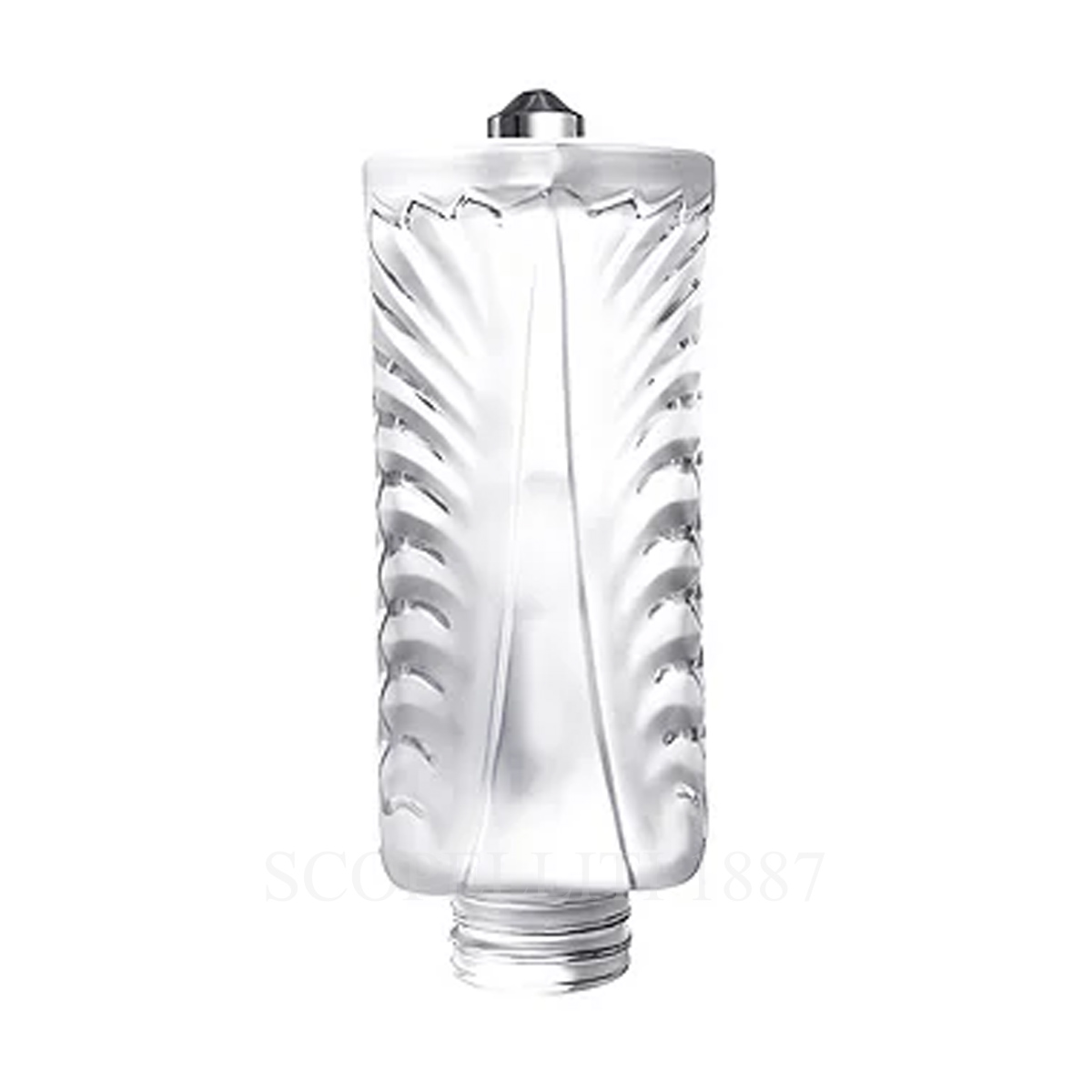 An Iconic 1929 Design Reimagined in Crystal The Lalique Palme Wall Sconce revives a historical creation by René Lalique from 1929. Featuring refined palm leaf motifs in satin and clear crystal, this elegant wall light captures the essence of Lalique’s Art Deco heritage. The interplay of textures enhances the light’s warmth, creating a soft and sophisticated glow. Crafted with the Maison’s unparalleled artisanal expertise, the Palme Wall Sconce is a statement of timeless elegance and French craftsmanship. Ideal for refined interiors, it brings history, light, and luxury together in perfect harmony.