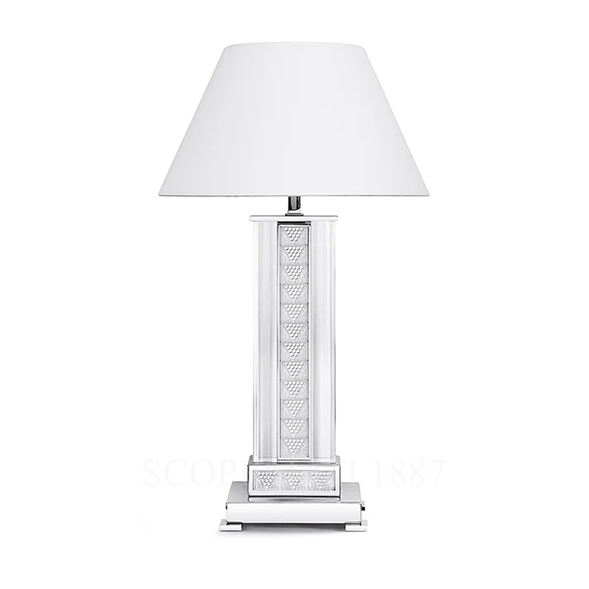 Inspired by Bacchus, the Roman god of wine and pleasure, the Lalique Raisins Lamp Small celebrates the art of fine living. With its elegant bunches of grapes carved in pure crystal, this sculptural lamp is a sophisticated statement piece. The clear crystal motif exudes timeless refinement, while the polished steel structure adds a contemporary touch. This numbered edition design blends heritage with modernity, making it ideal for luxury interiors in both residential and hospitality settings.