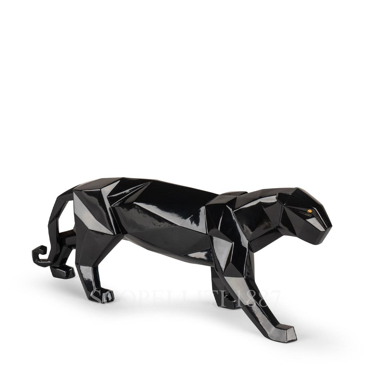 Panther is a porcelain sculpture in the classic style of the brand, but with a geometric approach. It belongs to the Origami collection, inspired by the Japanese art of paper-folding, creating objects from a single sheet of paper.In matte black porcelain, with just a touch of color in the eyes. This piece has a fun alternative version in a glossy white finish with touches of color. The perfect gift. Made in Spain. Insurance included.