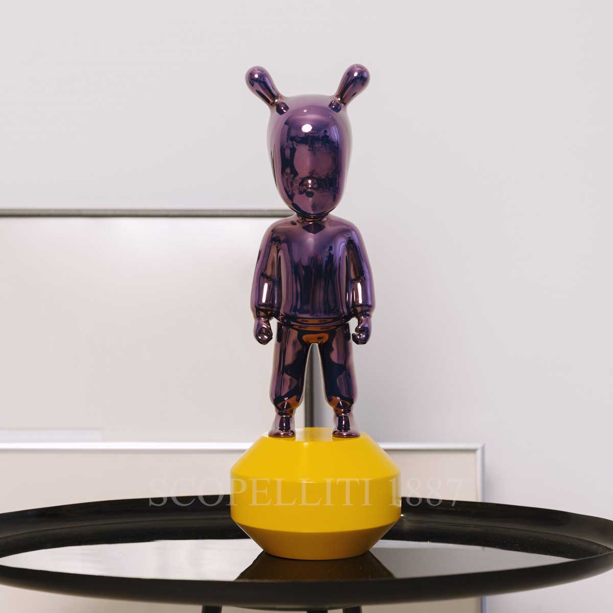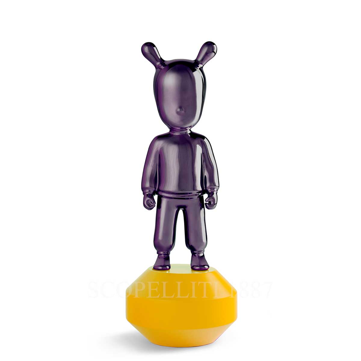 Lladró The Guest Figurine Small Purple in gloss and metallic lustre porcelain with yellow base. Gift box included.