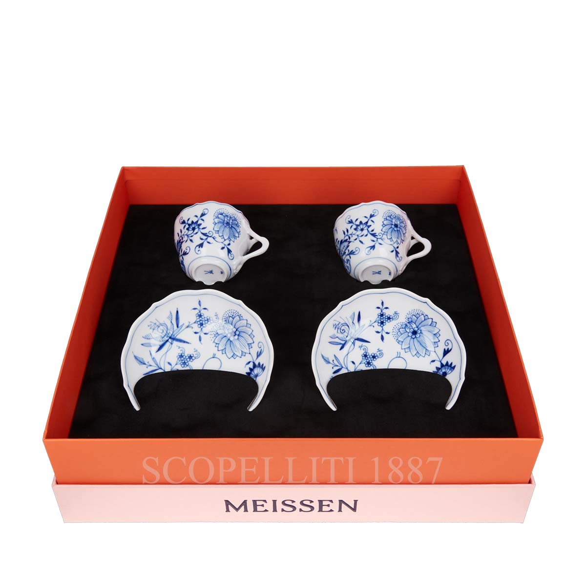 The Meissen Blue Onion Espresso Set offers noble tableware, hand-painted to perfectly complement any dinner setting. This exquisite set transforms the simple act of enjoying an afternoon coffee into a memorable experience. Featuring the “New Cutout” shape with the iconic “Onion Pattern” design in cobalt blue, this set was first crafted in 1739 and draws inspiration from East Asian motifs. Interestingly, the “onion” pattern does not depict onions; instead, it showcases delicate pomegranates, peaches, bamboo, and blossoms, reflecting the beauty of those traditional designs. As part of a traditional dinner service, the Meissen Blue Onion Espresso Set stands out as a special piece of fine tableware. This hand-painted milk jug is a true highlight for your home collection, perfect for serving milk or cream alongside your favorite espresso.