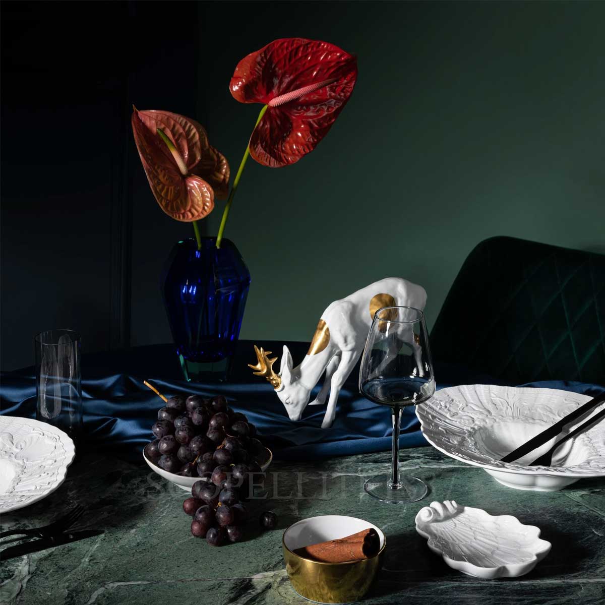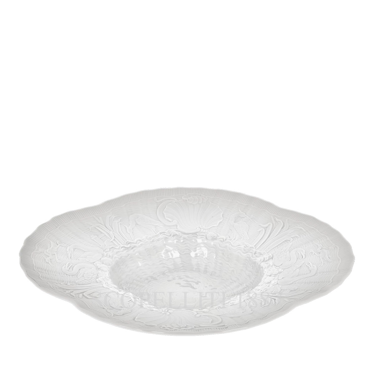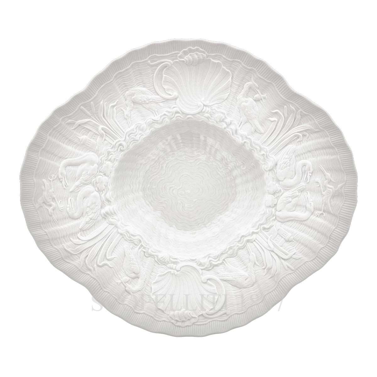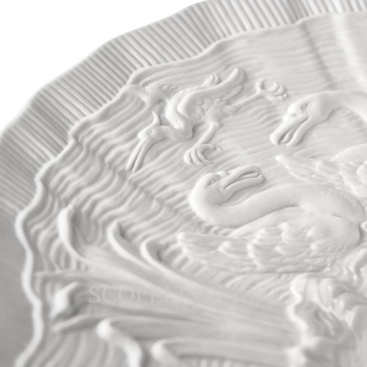 The Meissen Swan Bisque Gourmet Plate Low is a stunning representation of Baroque artistry, originally designed by master modeller Johann Joachim Kaendler. This exquisite flat gourmet plate features a matte, slightly translucent bisque porcelain texture, beautifully reflecting the grandeur of the original Swan Service while adding a contemporary elegance to modern tableware. Adorned with a delicate relief of swans gracefully swimming through reeds and framed by intricate sea shell accents, the Meissen Swan Bisque Gourmet Plate Low seamlessly combines traditional craftsmanship with modern design. Its unglazed finish enhances the beauty of its detailed artistry, providing a unique blend of timeless charm and modern sophistication. Elevate your dining experience with the Meissen Swan Bisque Gourmet Plate Low, an iconic piece renowned for its impeccable quality and craftsmanship. This plate is not just a dining accessory; it’s a statement of elegance for any collection.