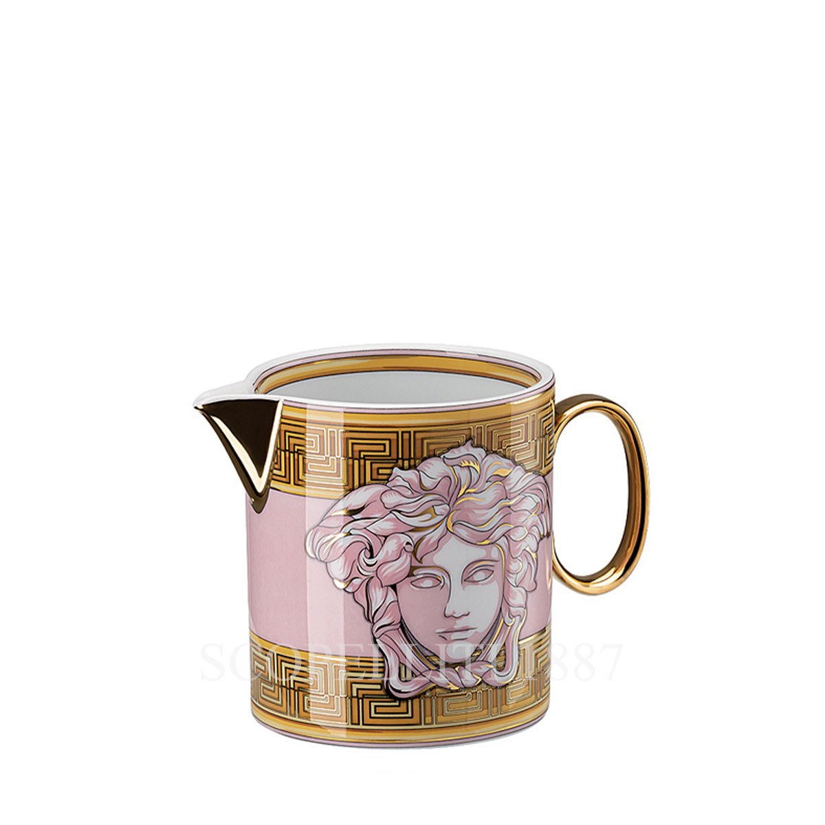 The Versace Creamer Medusa Amplified Pink Coin is a luxurious porcelain piece that brings Versace’s signature style to your table. This elegant creamer features intricate golden detailing and coin-inspired patterns, creating a sophisticated and modern design. Crafted from high-quality porcelain, it combines timeless luxury with contemporary flair. Perfect for serving cream or milk, this creamer adds both functionality and beauty to your dinner set.