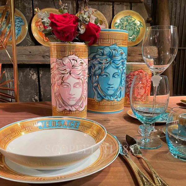 The Versace Vase 24 cm Medusa Amplified Pink Coin is a captivating addition to any tableware or home décor collection. Made from fine porcelain, it features the iconic Medusa motif paired with an amplified design, making it a stunning centerpiece for enhancing your space with luxury and style. Crafted with precision by Rosenthal in collaboration with Versace, this vase showcases exceptional craftsmanship and quality.